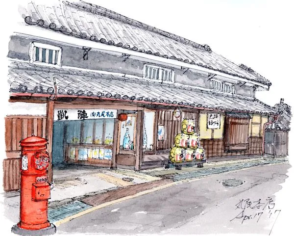 1885년에 창업한 마루오 본점 (丸尾本店)이다. 대표브랜드로는 가이진(凱陣)이라는 사케로 나무로 만든 찜통과 일본식 가마솥을 사용하여 찐 살로만 빚는 준마이다이긴죠와 준마이가 메인 사케로 농후하고 밀도 높은 맛을 자랑한다고 한다. 마루오본점의 일화로 유명한 것은 에도막부 말기에 기습을 받았을 때, 다카스키 신사쿠라는 인물을 빈 술통 안에 숨겨줬는데 화를 면했다는 일화가 있다. 역사에서도 등장하는 주조장으로 세월을 같이 한 노포임에 틀림없다.