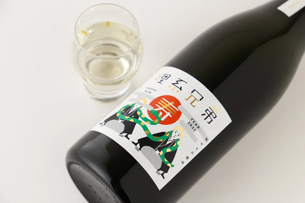 이과계 형제가 양조했다고 해서 브랜드 이름도 이과형제 寿(ことぶき)근하신년 2025. 두 형제가 뱀을 목에 두르고 있는 모습이 다소 해악스럽지만 뱀의 해를 강조한 이미지이지 않나 싶다.