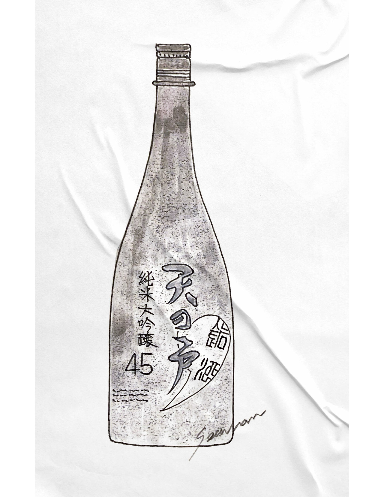 하늘의 문이라는 뜻을 가진 아마노토(天の戸)!!검은색 병에 하얀색의 세 글자는 왠지 모르게 마시고 있으면 하늘로 올라갈 수 있는 기분이 들 정도로 묘한 매력이 있다. 또한 옆에 있는 주술 문양 또한 라벨 디자인에 보완재 역할을 하면서 고급스러움을 더한 것 같다. 양조장 심벌로도 사용하는 거 같기도 하고..