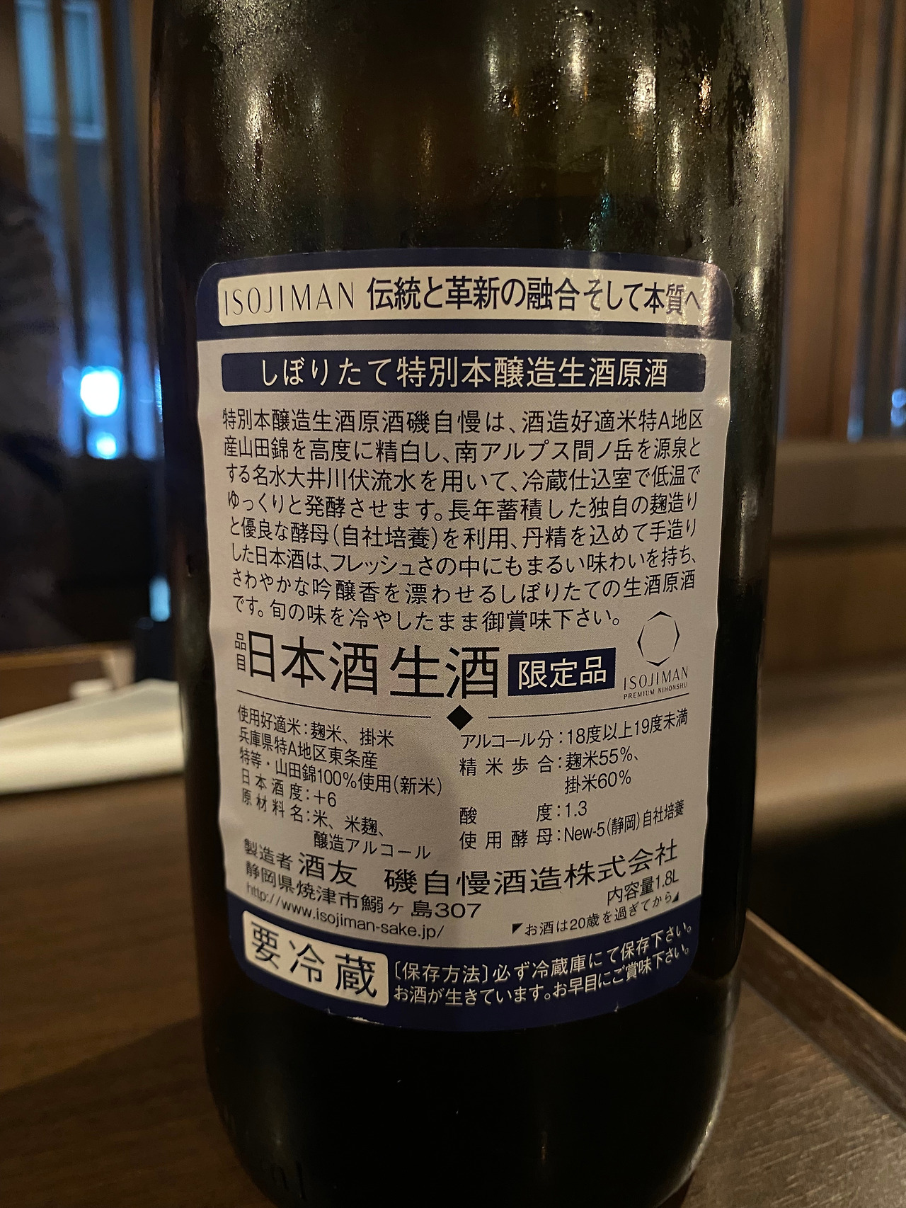 시즈오카의 기후와 물에 맞는 시즈오카 효모를 개발하여 1975년 후반부터 명문 양조장이 된 이소지만 주조!!. 이 시즈오카 효모를 시험 양조로부터 도입해 재빨리 다이긴죠를 만든 것이 이소지만 주조(礒自慢酒造)이다. 그 뒤 이소지만 주조의 맛에 감동해「꼭 거래하고 싶다」라고 신청해 오는 주류 판매점이 늘기 시작되면서 착실하게 신뢰 관계를 쌓고 판로를 넓혀 갔다. 그래서 지금도 특약점은 현지 야이즈를 제외하고 전국에서 45개뿐이다. 철저히 도매상은 통하지 않고 백화점에도 두지 않는 자신감이 있는 양조장이다.