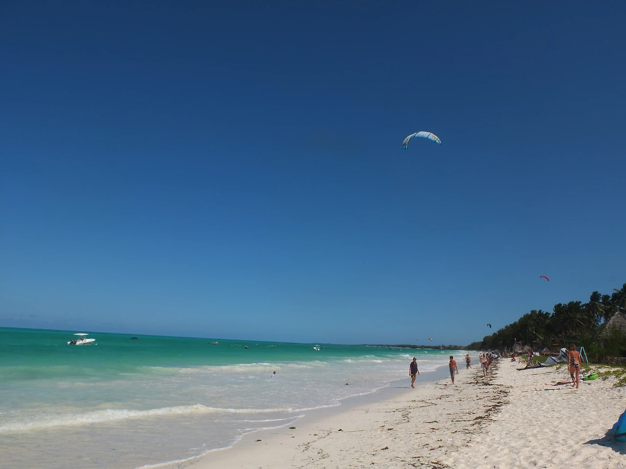 마침내 파제 해변(Paje Beach)에 이르렀을 때, 그 황홀감은 최고조에 이르렀다. 끝도 없이 펼쳐진 해변가에는 노천 바와 카페가 줄지어 있었고, 바다 빛을 꼭 닮은 하늘에는 사람들이 연에 매달려 떠다녔다. 조심스레 가격을 물어보니 3시간에 100파운드라는 대답이 돌아왔다.