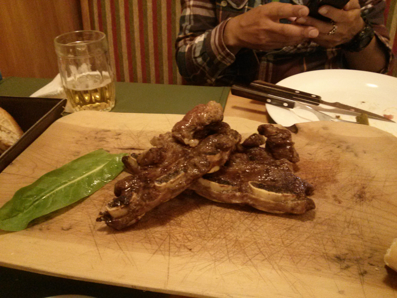 고기가 질기다. 질겨도 너무 질겼다. 실수로(제발) 힘줄을 제거하지 않은 고기 같았다. 그뿐만이 아니라, 고기를 소금통에 빠트린 것 같이 짰다. 우리는 동시에 말을 잃었다. 겨우 접시를 비우자, 어디선가 나타난 웨이터가 잽싸게 새 접시를(물론 아사도가 담긴) 가져다 놓으며 엄지손가락을 들어 보였다.