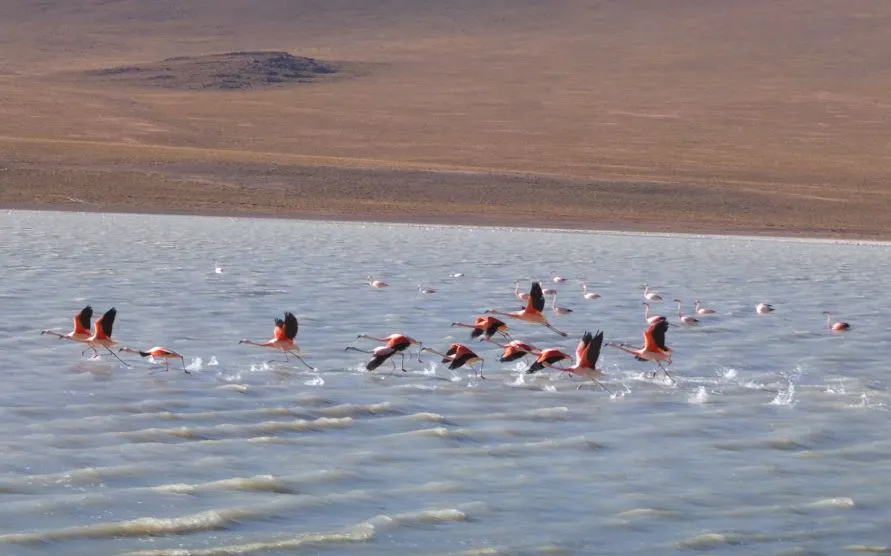 산 아래에는 거대한 호수가 펼쳐져 있었고, 호수 위에 홍학의 모습을 한 조형물이 잔뜩 세워져 있었다. 멀지 않은 곳에 수증기가 잔뜩 솟아 오르는 곳이 있었는데, 계란 썩는 냄새가 사방에 진동했다. 한때 화산이었음이 분명한 산꼭대기에는 하얀 눈이 핏줄처럼 서려 있었고, 담수가 분명한 호숫가에는 소금이 딱딱하게 굳어진 하얀 바닥이 이어졌다.