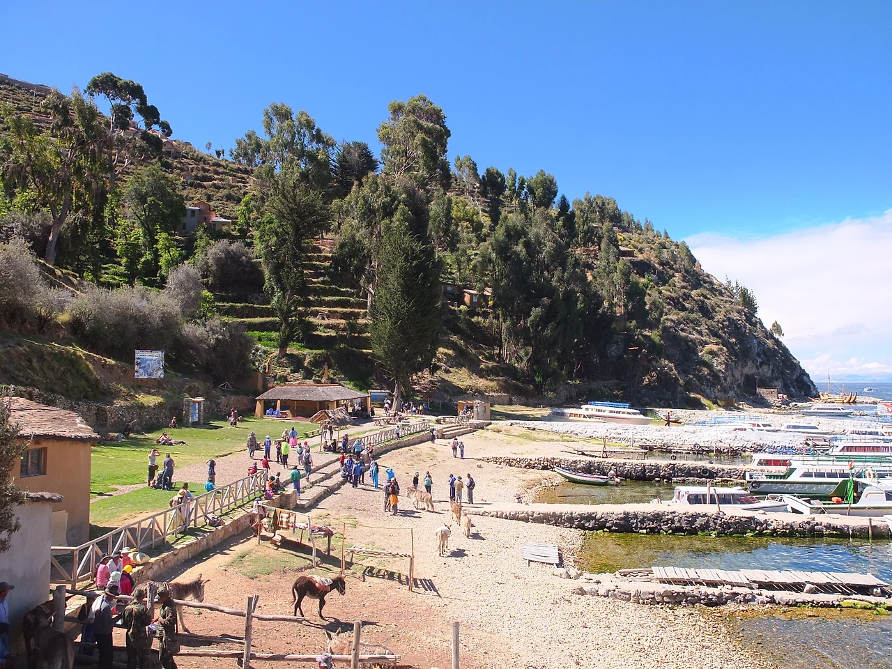보트에서 바라보는 태양의 섬(Isla del sol) 은, 섬 전체가 계단식 논으로 이루어진 것 같은 모양이었다. 섬에 도착하고 나니, 더욱더 느린 풍경이 펼쳐졌다. 사람들은 배에서 내린 짐을 하나씩 당나귀에 실었다. 그리곤 해발 3천6백 미터의 계단을 당나귀보다 더 느릿하게 올랐다.