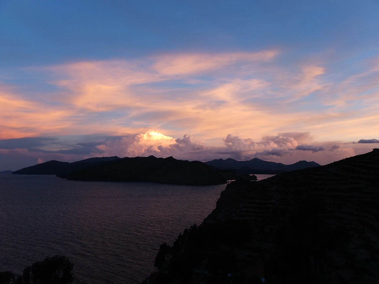 숙소에 대충 짐을 놓고, 해가 지기엔 조금 이른 시간에 꼭대기에 올랐다. 온통 계단식 미로처럼 길이 나 있는 태양의 섬은 꼭대기에 오르자 비로소 넓고 평평한 곳이 나타났다. 군데군데 자리 잡은 크고 작은 섬에 턱 하고 걸쳐진 티티카카 호수의 모습은 그야말로 아름다웠다. 강한 바람에 회오리처럼 하늘을 수놓은 구름을 배경으로, 해가 질 때까지 제법 긴 시간을 그 언덕에서 기다렸다.