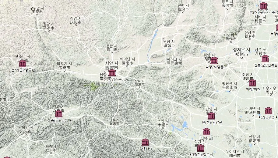시안은 단순히 아름답기만 한 도시는 아니다. 최초의 황제인 진시황의 무덤이 있는 곳이며, 당나라의 수도였고, 무엇보다 촉에서 위로 진출하기 위해서는 지나갈 수 밖에 없는 관문이다. 지도를 보면, 그 위치의 중요함이 한눈에 들어온다.