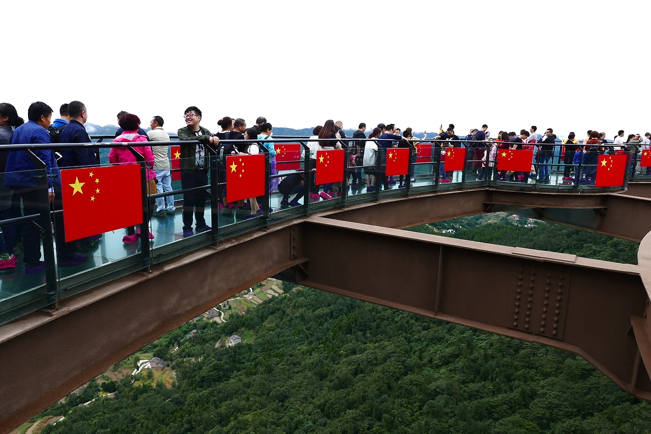 살면서 몇 가지 믿기지 않는 장면을 눈앞에서 목격했지만, 그 날도 그 중의 하나였다. 다시 중턱까지 내려오는 케이블카를 탄 나는, 절벽에 개미처럼 다닥다닥 붙어 머리에는 철모를 쓰고 길게 늘어진 쇠줄 하나에 의지해 위태롭게 절벽을 오르는 무리를 발견했다.