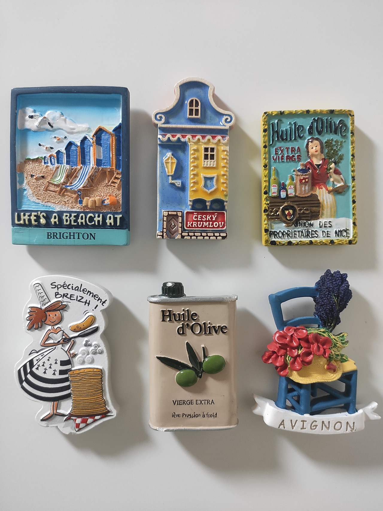 내 경우는 TV를 자주 보게 됐다. 세계 테마 기행, 걸어서 세계 속으로, 트래블러 등, 주로 1인칭 주인공 시점의 여행 프로그램이다. 다녀온 나라 수가 마흔 개 정도가 넘어가서, tv에 나오는 곳이 웬만하면 다 가본 곳인 사람이 쓰기 좋은 방법이다. 여기에 더해 한 가지 버릇이 생겼다. 현지에서 사 온 마그네틱을 만지작 거리는 것.