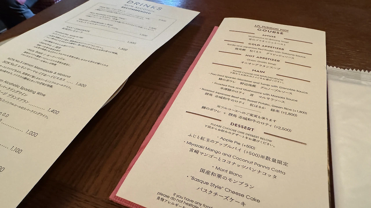 레스토랑 라 메종 키오이 메뉴판