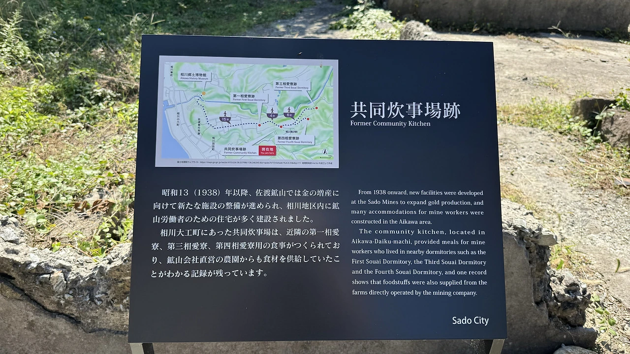 1938년(쇼와 13년) 이후, 사도광산에서는 금 생산을 늘리기 위한 새로운 시설 정비가 진행되었고, 아이카와 지역 내에는 광산 노동자들을 위한 많은 주택이 건설되었습니다. 아이카와 다이쿠마치(相川大工町)에 있었던 공동취사장은 인근의 제1소아이료, 제3소아이료, 제4소아이료에 거주하는 노동자들의 식사를 준비하는 곳이었으며, 광산 회사 직영 농장에서 식재료가 공급되었다는 기록도 남아 있습니다.