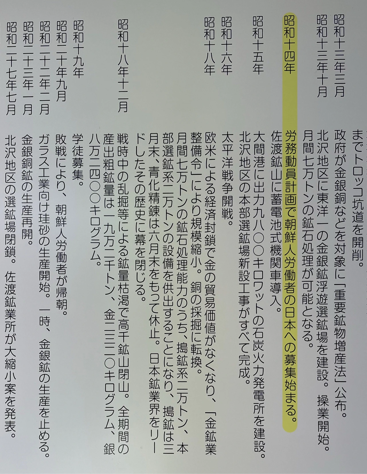쇼와 14년(1939년) 노무동원계획에 따라 조선인 노동자의 일본에의 모집을 시작했다.