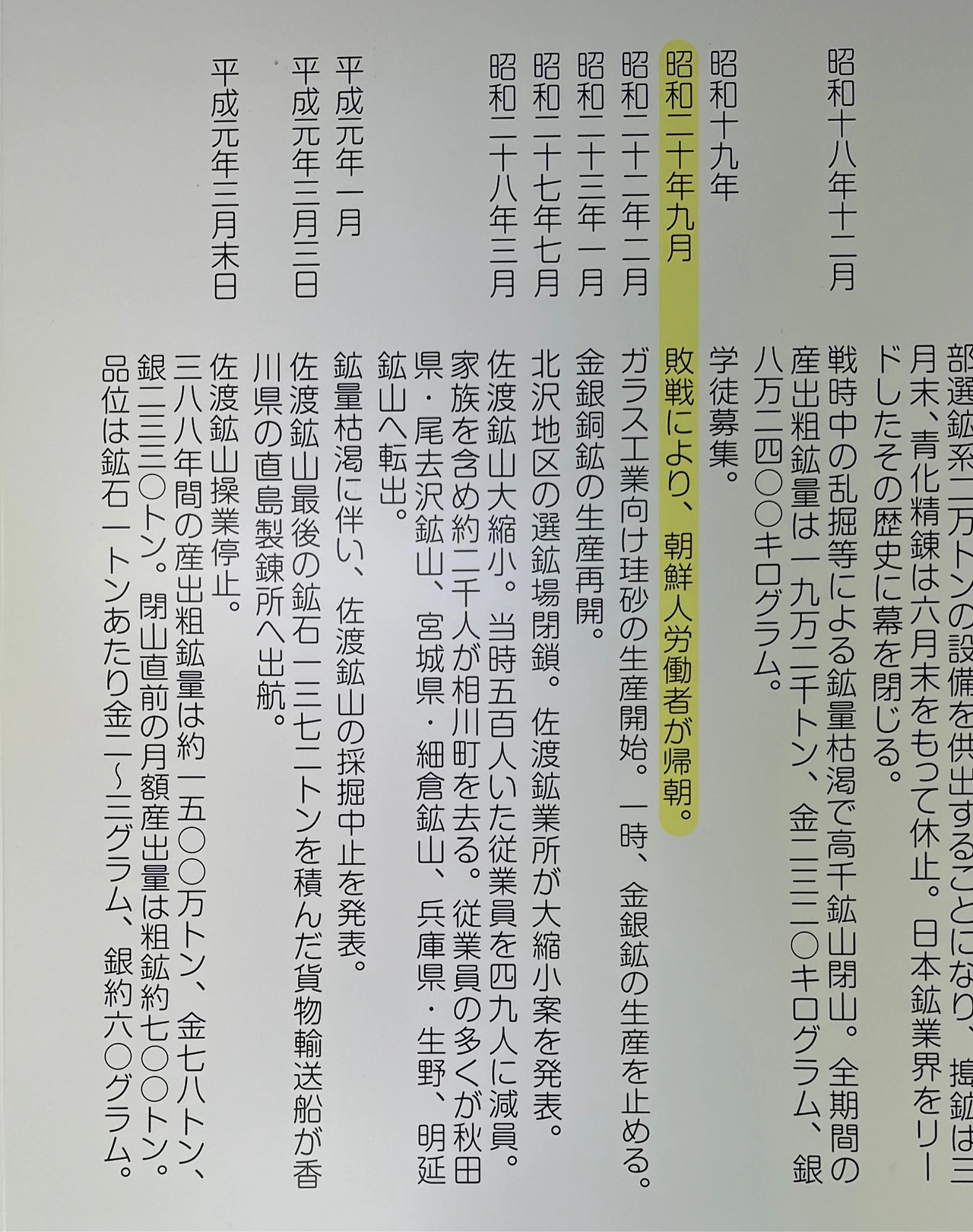 쇼와 20년(1945년) 9월 패전으로 조선인 노동자들이 귀국하였다.