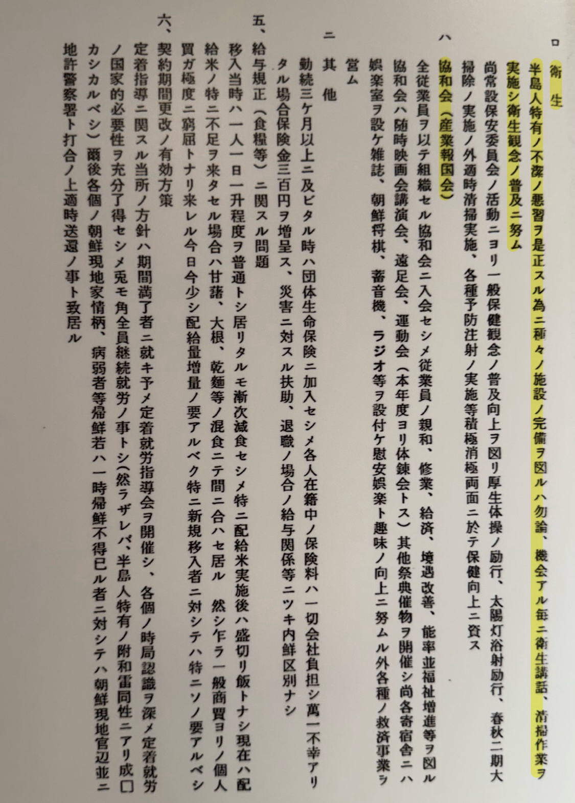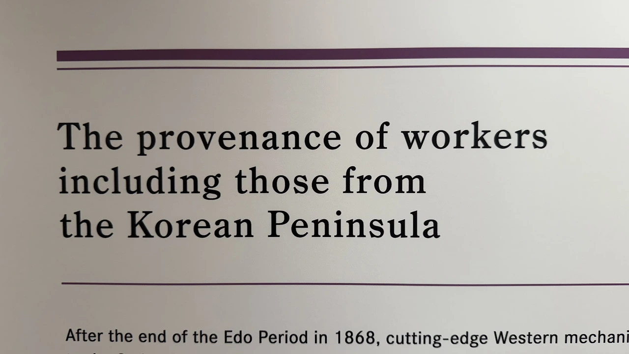 특히 위의 특별고등경찰 월간 보고서 1942년 1월호와 같이 가혹한 노동환경을 알리는 사료가 존재하긴 하였으나, 문제는 영어번역이 없어 외국인 관광객은 내용을 알아차리기 힘들다는 점에 있었다. 아래 전시물에서도 조선인 노동자들을 '비위생적・비도덕적 존재'로 간주하고 교화 대상으로 취급하며, '협화회' 등의 조직을 통해 생활 전반을 통제하고 감시했던 내용이 나타나있으나 영어번역이 존재하지 않는다.