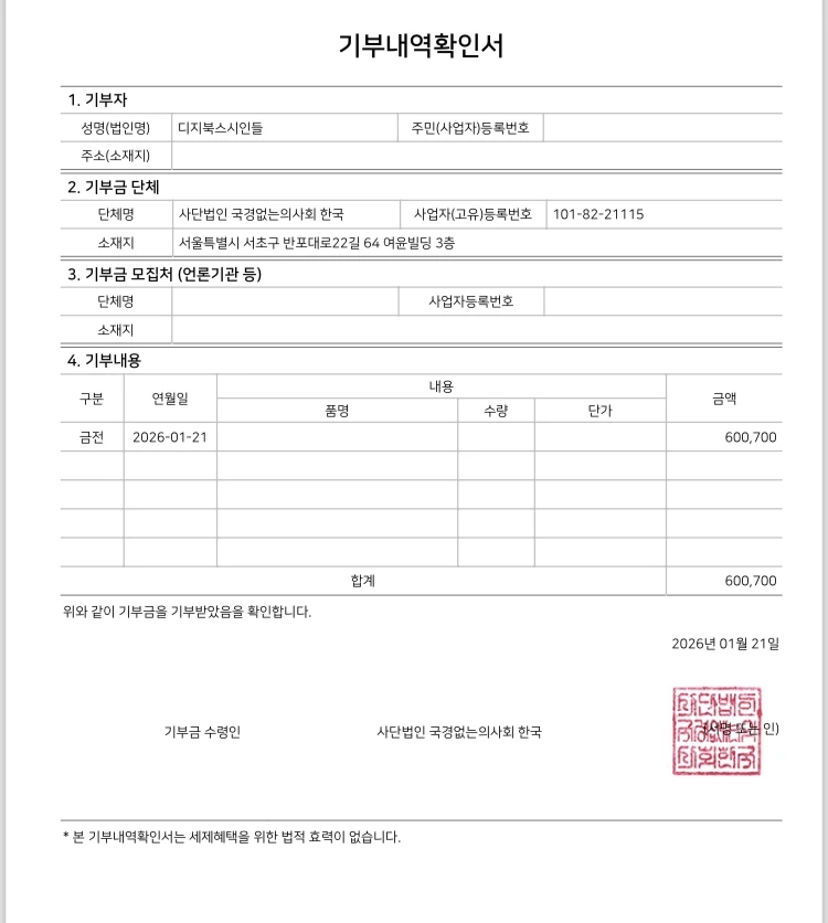 국경없는의사회에 기부되었습니다.