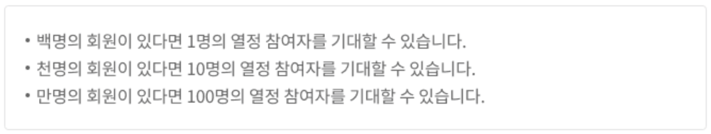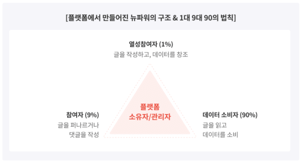 한, 두 번의 활동만으로 '열성 참여자'에 속한다고 말하기에는 조금 무리가 있습니다. 그렇다면 우리 대부분은 9%... 아니, 90%에 속할 가능성이 큽니다. 어쩌면 필요에 의해서만 가끔 플랫폼 혹은 커뮤니티에 방문할 수도 있겠죠.