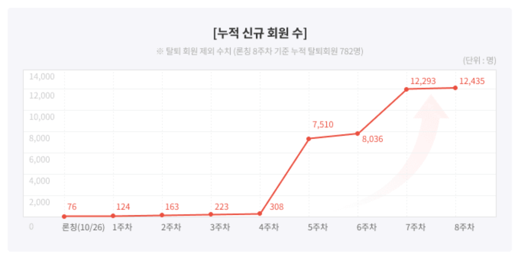 B2C사업이 처음인 까닭에 홍보/마케팅을 진행하는 과정에서 크고 작은 시행착오들이 있었지만, 이 또한 우리의 귀중한 레퍼런스가 되리라는 마음가짐으로 매진하였고 론칭 2개월 만에 누적 신규 회원수 1만 돌파라는 소기의 목표를 달성했습니다.