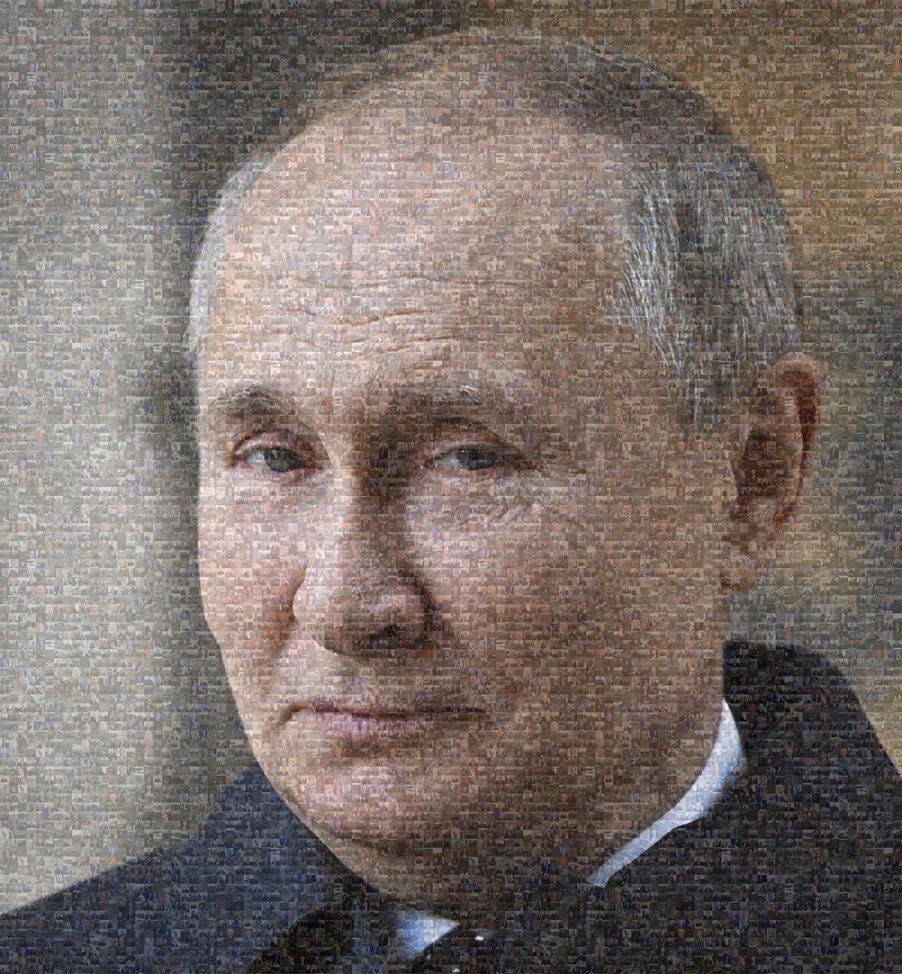러시아-우크라이나 전쟁의 참상을 알리는 사진들을 모아 만든 '푸틴의 초상'