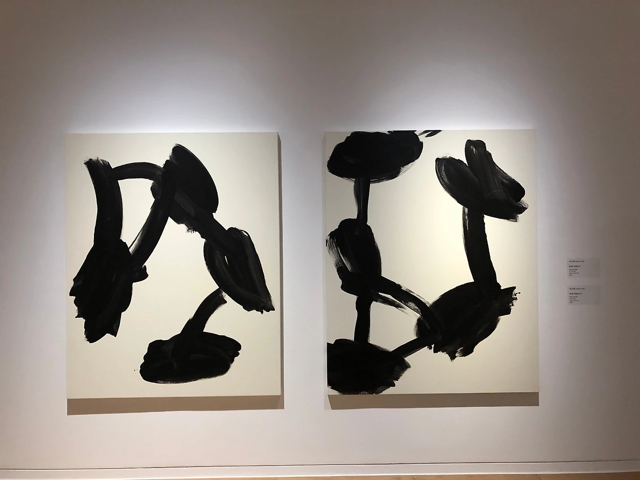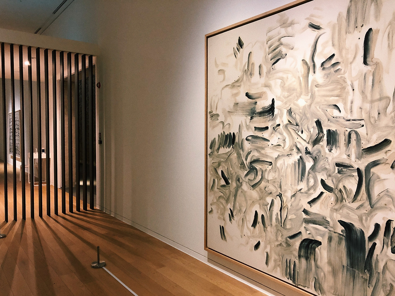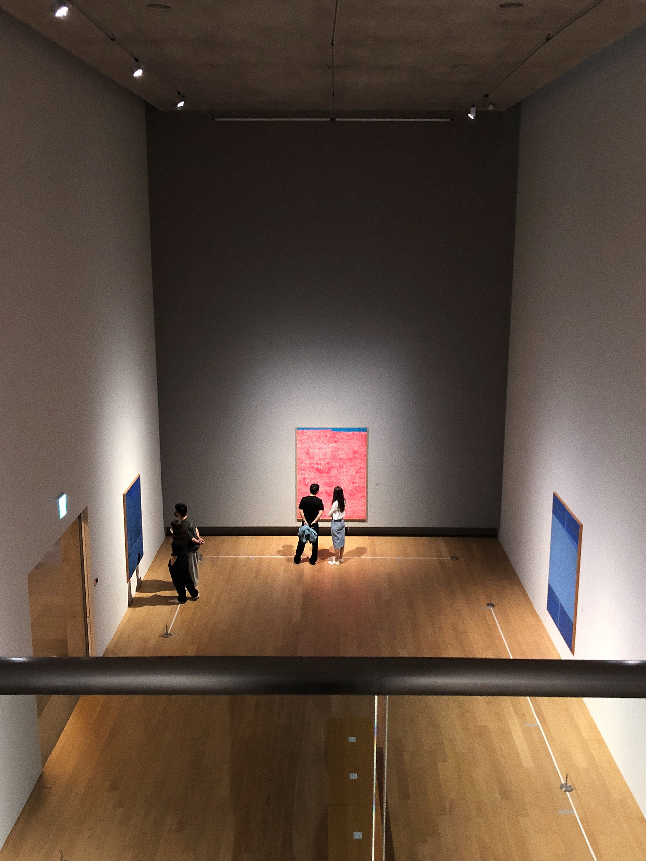 또 다른 전시실의 '기세와 여운展'. 김창열, 김환기, 윤형근, 이강소, 이우환 등의 한국 작가들의 작품을 볼 수 있다. 이 전시는 서예에서 파생된 선들이 갖는 에너지와 사유적 세계를 보여준다.