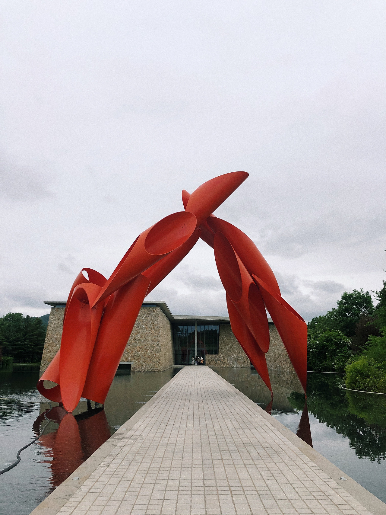 뮤지엄 본관 앞에 다다르면 워터가든이 나온다. 그리고, 바로 그 유명한 Archway. 푸른 숲과 투명한 물 가운데 장엄한 자태로 하늘을 향해 솟아오른 붉은색이 강렬하다. 사선으로 잘린 파이프 조각들이 엉켜있다. 거대한 철제 조형물이지만 정적인 공간에 경쾌한 리듬을 만들어주는 듯하다.