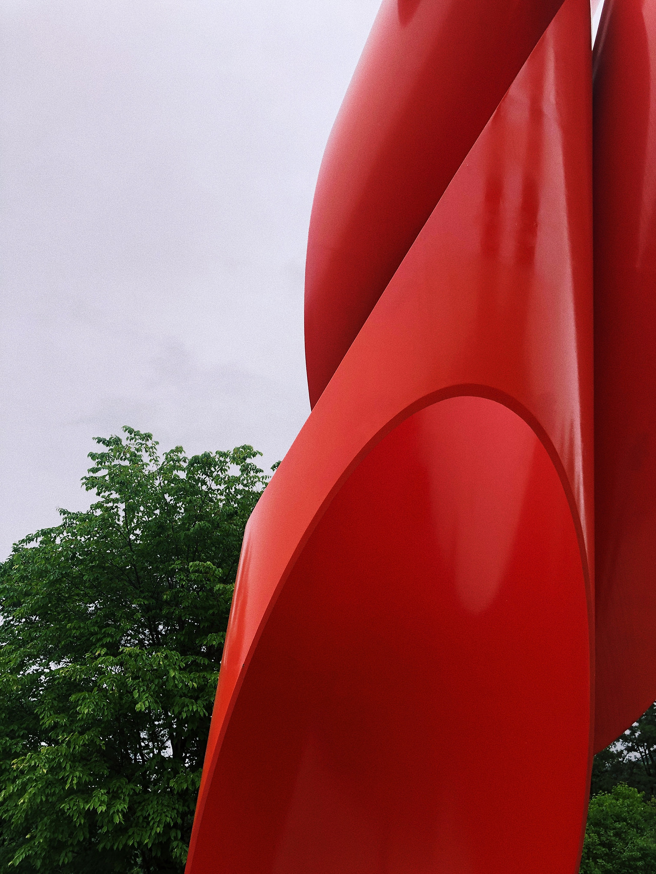 작가는 '알렉산더 리버만'. 붉은색 강철 조각과 기하학적인 패턴이 그의 시그니처라고 한다.