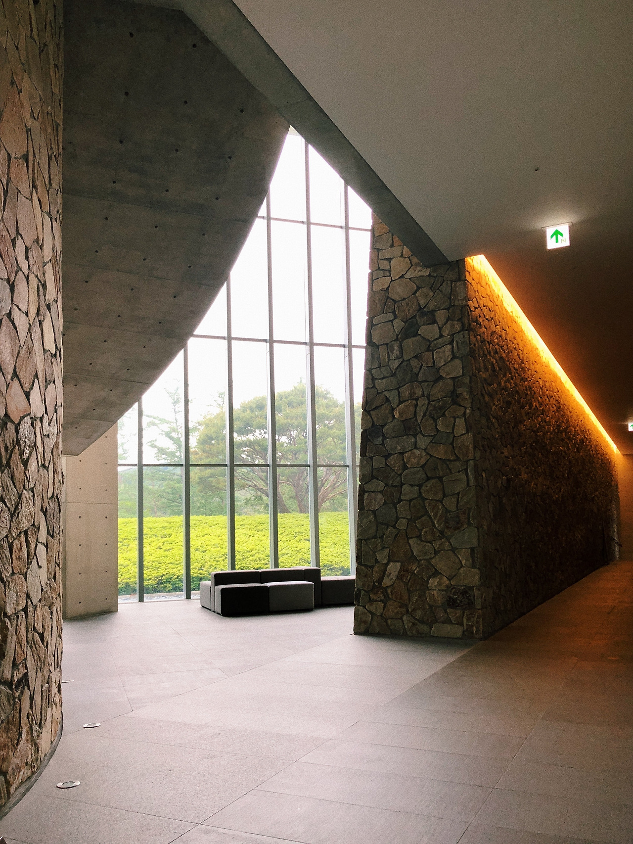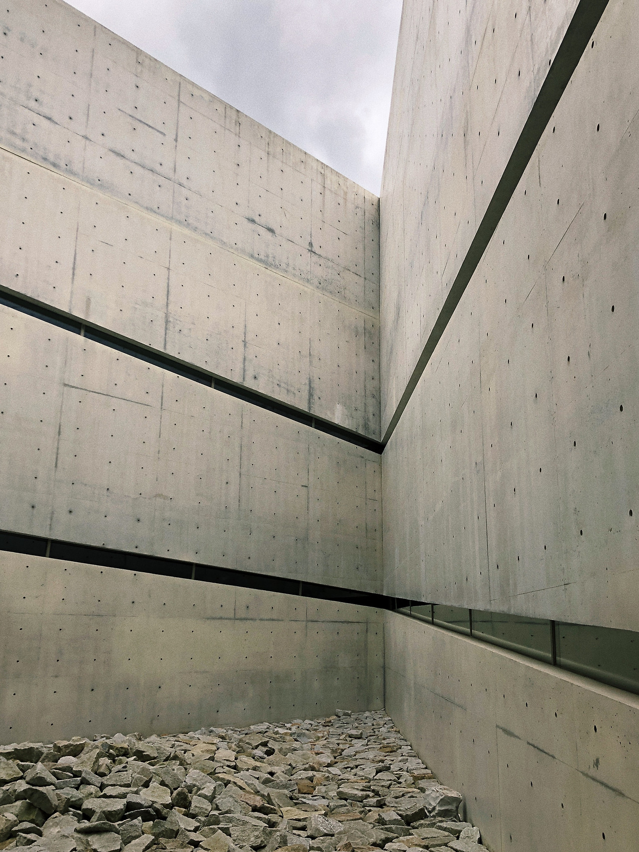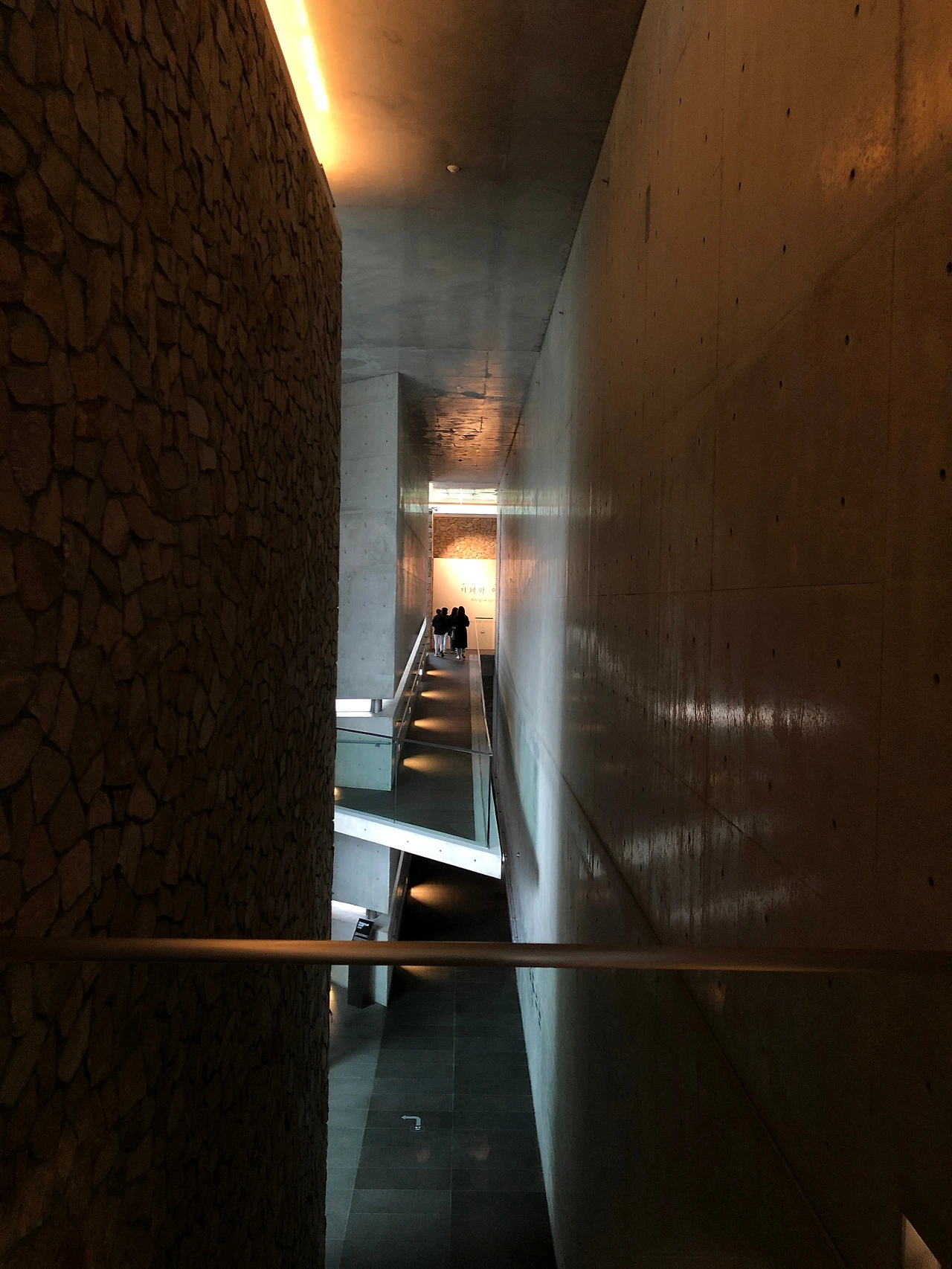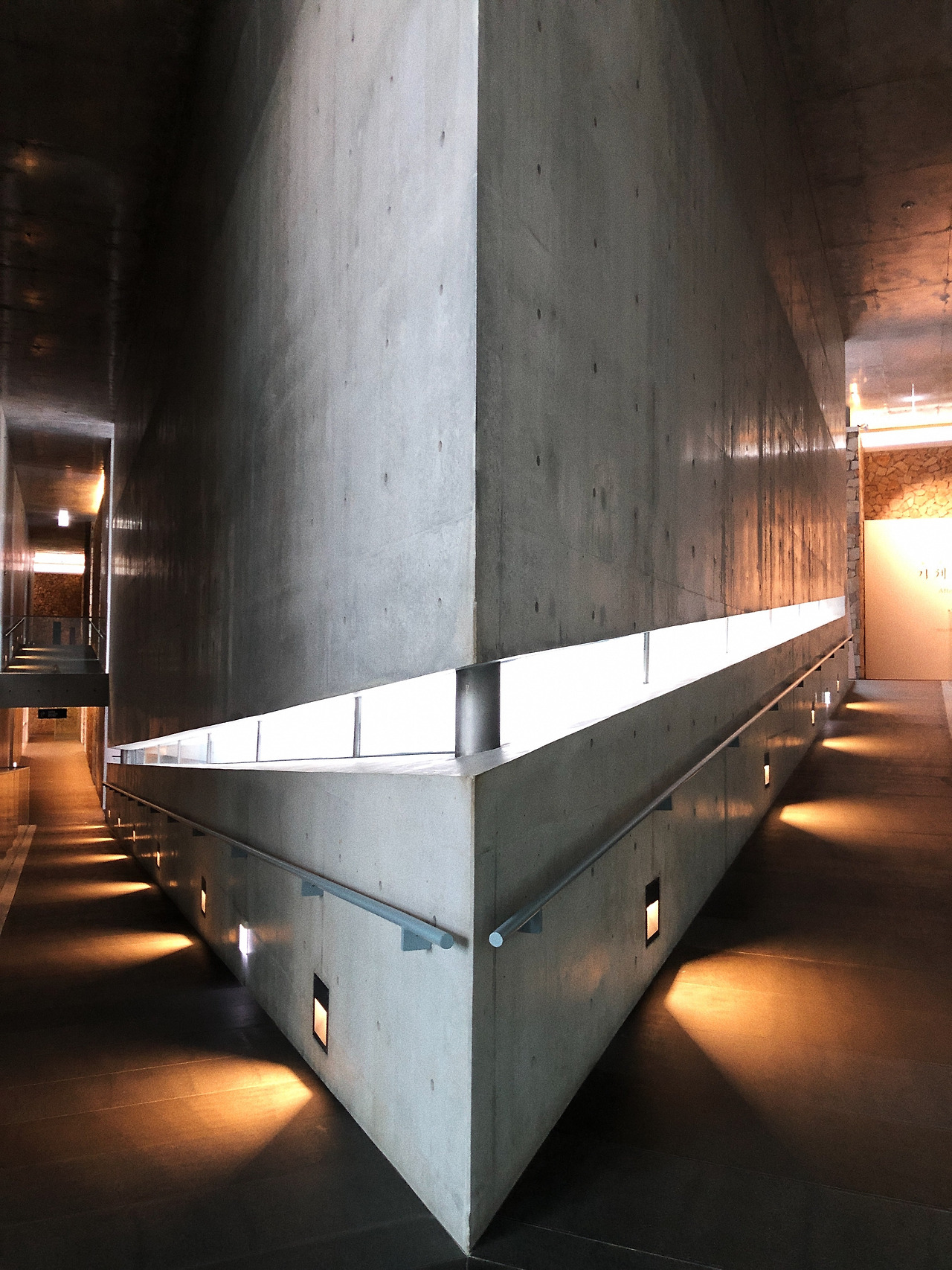 안도 다다오의 회색에는 여유와 사색의 시간이 담겨 있다. 공간과 공간을 잇는 긴 통로, 커다란 창으로 드리우는 빛, 탁 트이거나 좁거나 높은 곳으로 시선을 유도하는 방향성이 이 공간의 언어였다. 이 공간에 가장 잘 어울리는 소리는 침묵이고, 행위는 걷는 것이었다.