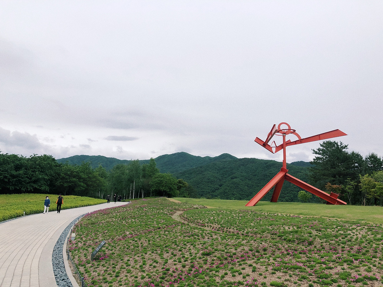 웰컴센터를 나오면 탁 트인 조각정원과 자작나무 산책로가 나온다. 비 온 다음날의 짙은 흙과 풀냄새로 마음이 착 가라앉았다. 이제야 '와, 잠시 서울을 떠나왔구나'하는 생각이 든다. 조각정원은 날씨가 더워지기 시작하는 6월부터 붉은 패랭이꽃이 들판을 가득 채운다고 한다(방문시기는 5월이었다). 계절이 바뀔 때마다 꼭 와서 멤버십 본전을 뽑아야겠다.