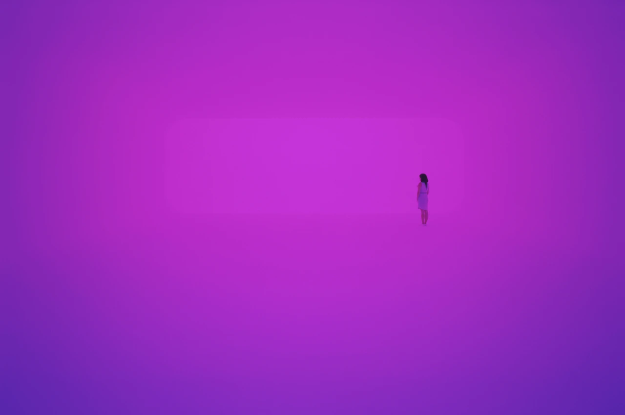 공간의 무한성을 느낄 수 있는 Ganzfeld. 아주 천천히 색상이 변한다. 아무것도 없는 순백의 공간이었다가, 푸른 하늘이었다가, 노을 녘이 되기도 한다. 좌우 시야를 가리고 벽을 향해 걷다 보면 끝없이 펼쳐지는 무한한 공간처럼 보이는 착시현상이 나타나기도 한다. 제임스 터렐은 이렇게 인간의 뇌를 속이는 착시 현상을 자주 활용한다.