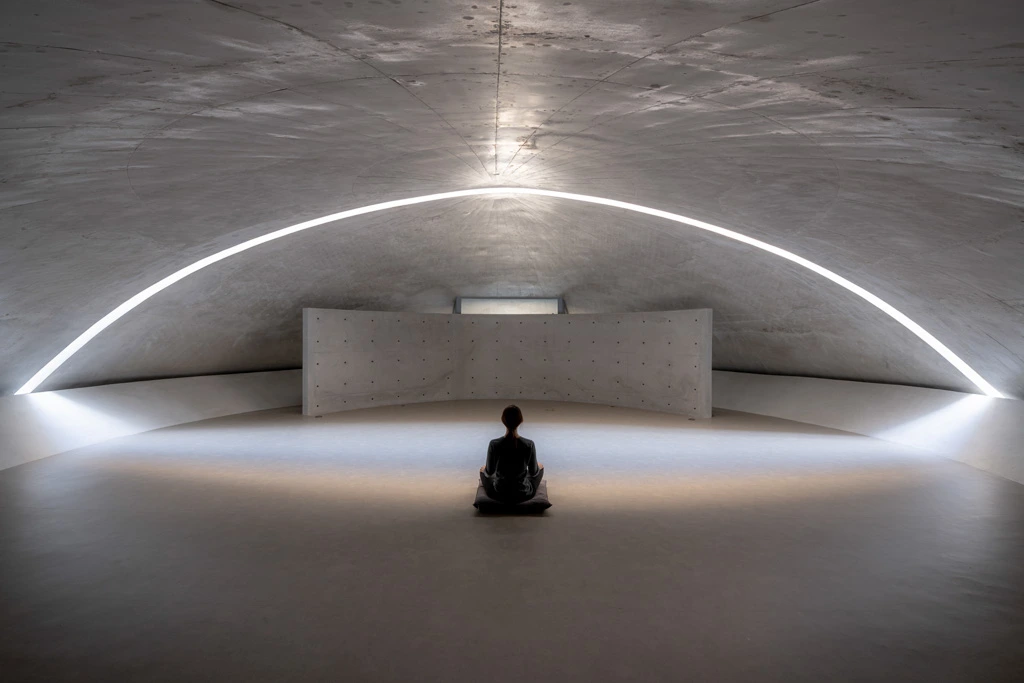 비슷한 돔 형태로 생겼지만 실내로 들어갈 수 있는 공간이 있는데, 바로 '명상관'이다. 둥근 돔 형태이지만, 가운데에 기다란 유리창이 있다. 명상 프로그램을 예약하고 정해진 시간에 입장할 수 있다.