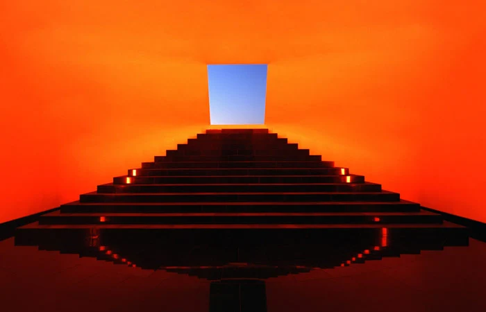 가장 숭고한 하늘에 맞닿게 되는 곳, Horizon room. 마치 제단과 같은 계단 위에 네모난 창이 뚫려있다. 동굴에 갇혀있다가 비로소 외부 세계로 한 발짝 나아가는 것 같다. 이 계단을 타고 올라가면 탁 트인 야외 테라스가 나온다. 작품 속 공간에 심취해 있다 보면, 잠시 어느 곳이 현실세계인지 분간이 되지 않는다.