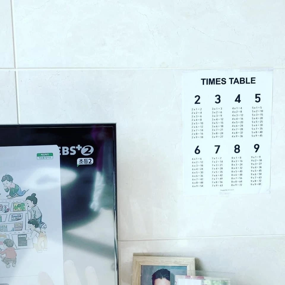 구구단 보드를 거실벽에 붙였다