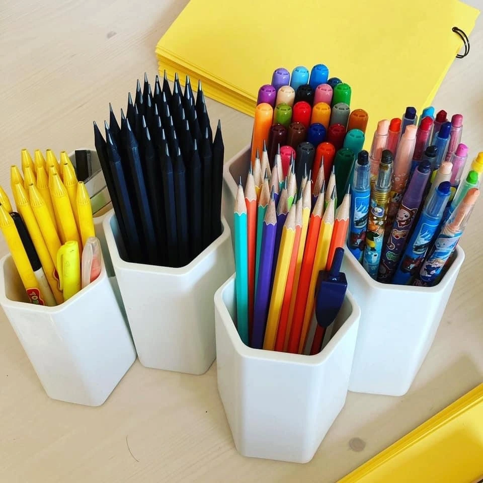 연필꽂이에 곱게 정리한 연필을 HB와 2B로 나눠 꽂고