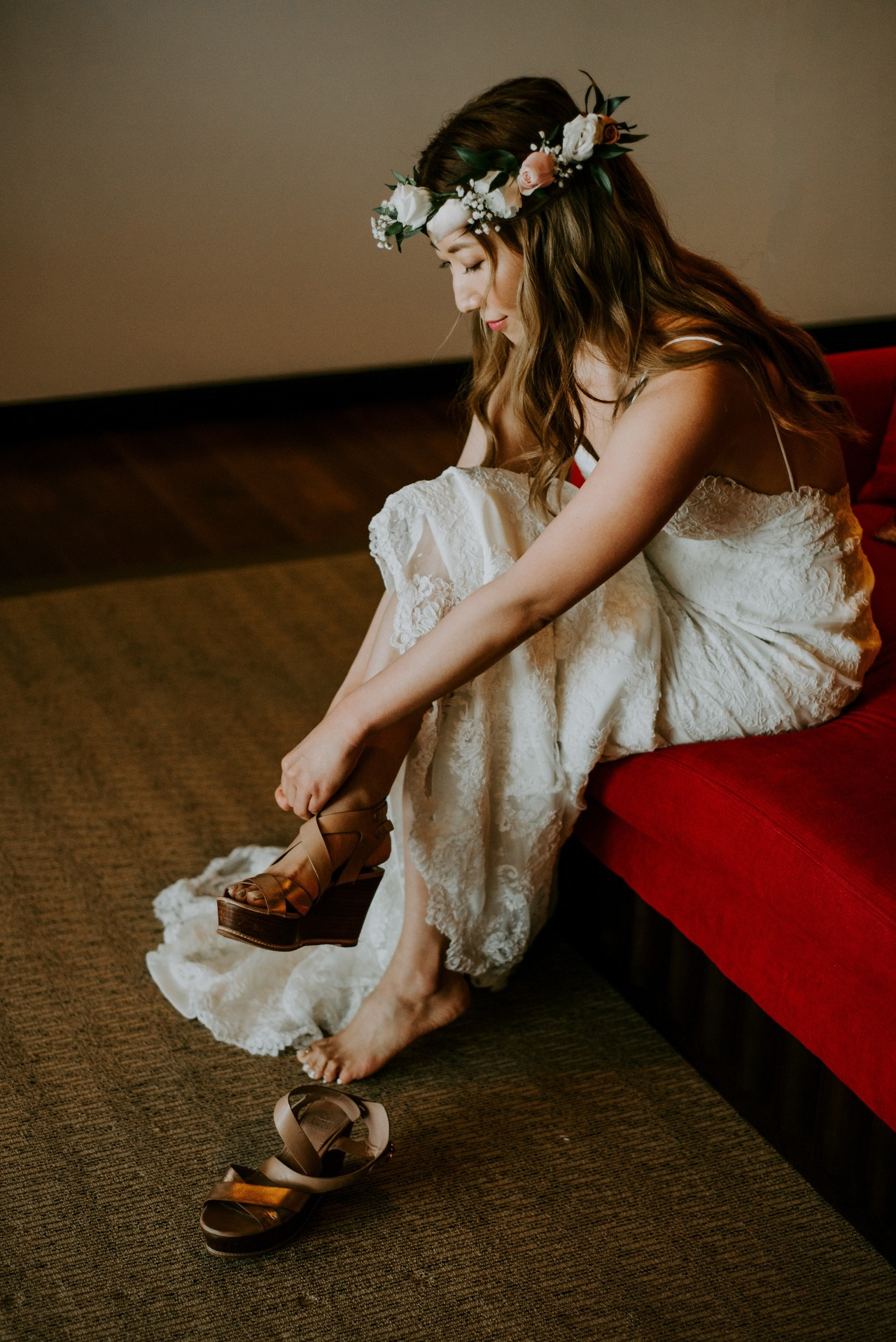 웨딩드레스로 갈아입을 차례가 오자 남편은 먼저 밖으로 나갔다. 신부의 웨딩드레스 모습을 미리 보여주지 않기 위해서이다. 방을 나간 남편과는 이제 '퍼스트룩' 장소에서 대면할 것이다.