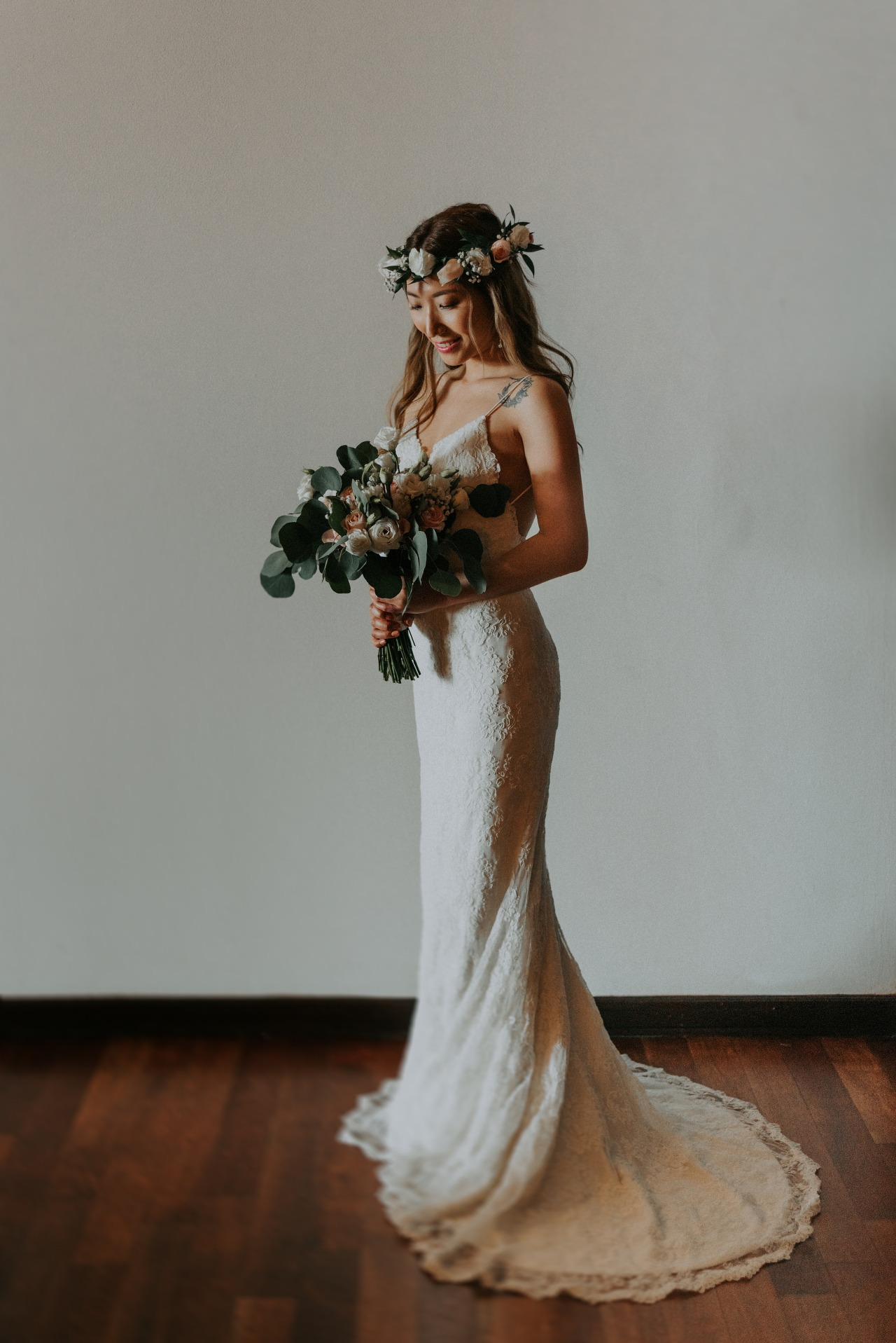 등이 깊숙이 파이고 허리와 엉덩이가 살짝 조여지다 끝자락에서 테일이 길게 빠지는 Sheath 스타일의 내가 고른 드레스는 조금은 과감한 한국의 일반 예식장 결혼식에서는 아마 조금 입기 어려운 디자인일 테다. 하지만 나의 발리 비치웨딩에는 딱이었다. 신부의 과감한 노출을 가지고 뭐라 할 부모님도, 시댁 식구들도, 하객들도 없었다.