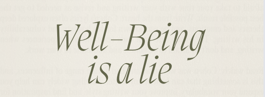 웰빙은 지속되지 않는다. 삶의 목적도 될 수 없다. 삶의 목적이 된다면 절대 이루어질 수 없을 것이다. 그저 순간순간의 플래시 같은 감정의 상태이지 영원히 지속할 수 없다. 인생의 길 위에 이따금씩 찾아오는 기분 좋고 긍정적인 상태들. 중요한 것은 불멸의 지속성이 아닌, 빈도수. 얼마나 자주 찾아오느냐. 그리고 찾아오지 않았을 때, 밑바닥에서 꺼내 올려줄 회복탄력성(resilience) 얼마나 단련되어 있느냐 즉 극한 세상을 살아가는데 생존을 위한 수단 중 하나일 뿐이다. 이전엔 몰랐다. 자본주의의 성장을 위해 사람들에게 심어놓은 긍정 심리학과 행복해지고 웰빙을 목적처럼 달성해야 한다는 압박감이, 사실은 우리를 옥죄고 삶을 고난하게 만든다는 것을.
