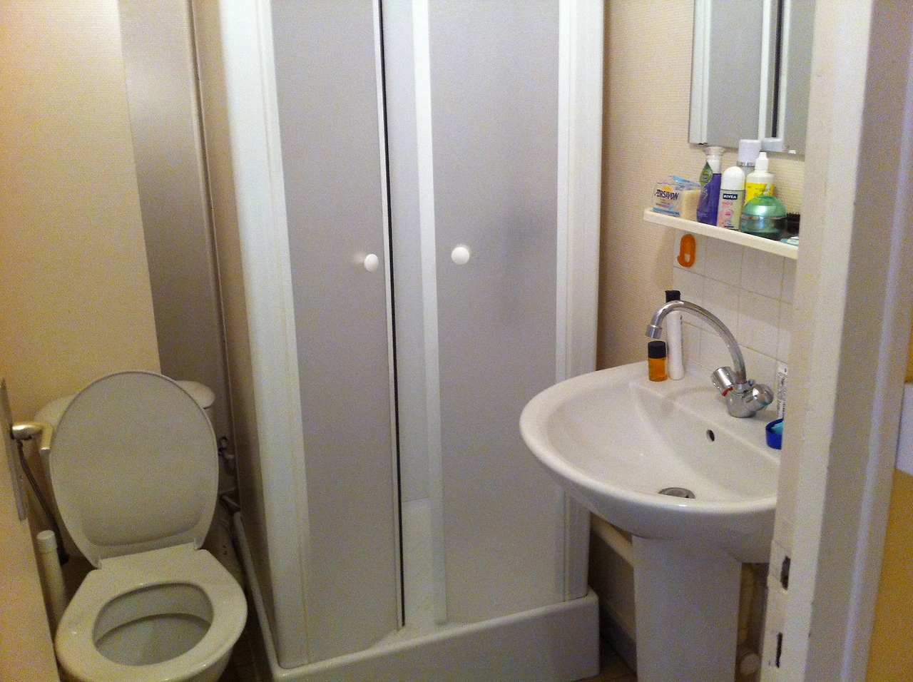 화장실은 조그맣긴 했는데, 샤워부스까지 있었다. 우리나라 같으면 세면대에 샤워기를 설치해서 샤워를 하겠지만, 프랑스는 물 자체가 석회질이라서 바닥에 물을 뿌리면 마른 자국이 하얗게 남기 때문에, 건식과 샤워부스는 필수인 것 같다.