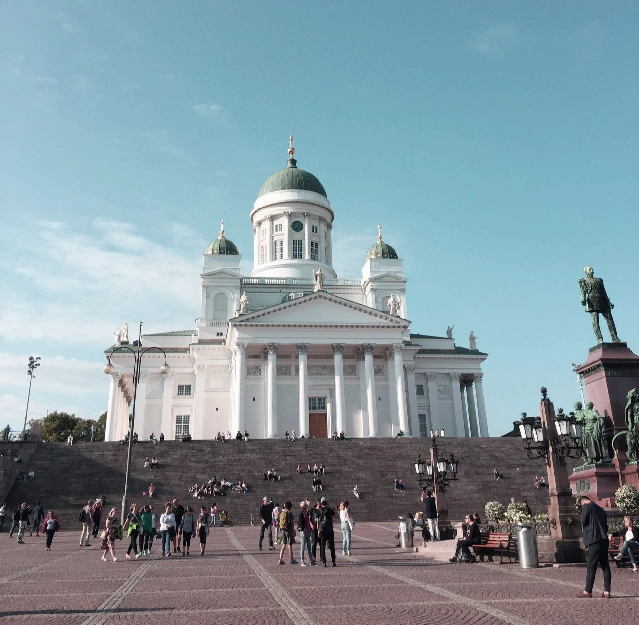 항상 한 여름에 그것도 초 성수기에 여행해야 하는 조건 때문에 어딜 가든 날씨가 습하고 덥거나 우리가 있는 내내 비가 온 여행지도 많았다. 뜨겁고 습한 서울 날씨에 반해, 맑고 시원한 헬싱키 날씨라니. 이 도시를 택한 이유 중 하나로 꼽아도 충분했다. 추운 날이 익숙한 헬싱키 사람들에게는 이렇게 좋은 날씨와 햇빛이 더욱더 간절하다고 한다. 단 몇 개월뿐인 여름 햇빛을 즐기기 위해 다들 여름옷을 입기엔 좀 쌀쌀함에도 불구하고 민소매 차림이 많이 보인다. 햇빛이 잘 드는 벤치 혹은 잔디밭마다 여유롭게 앉아 햇빛 샤워. 이 곳 사람들이 여름을 보내는 방식이다. 도착한 날부터 시간이 멈춘 듯 여유롭게 전해지던 그날이 문득문득 떠오른다.