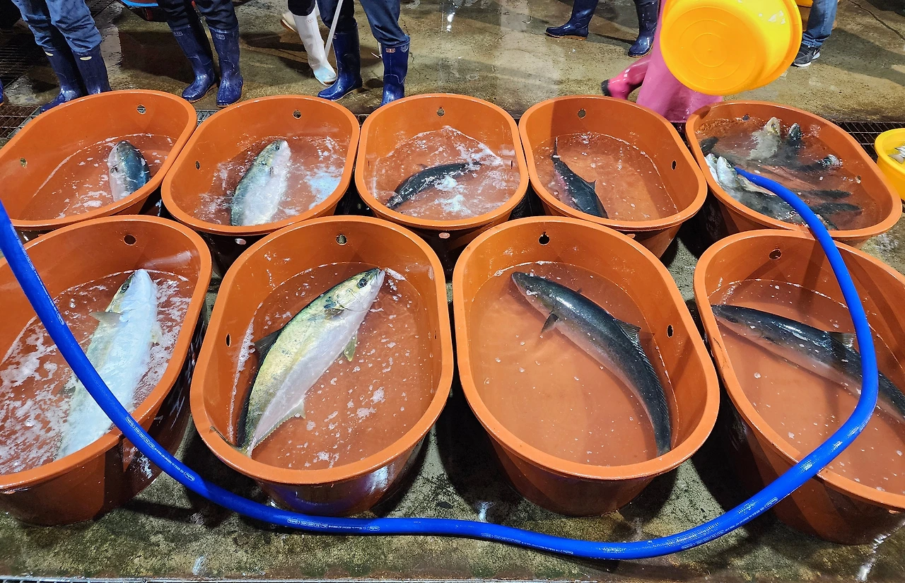 방어가 슬슬 잡히기 시작하고 남편이 두꺼운 작업복을 꺼내 입기 시작했다.
