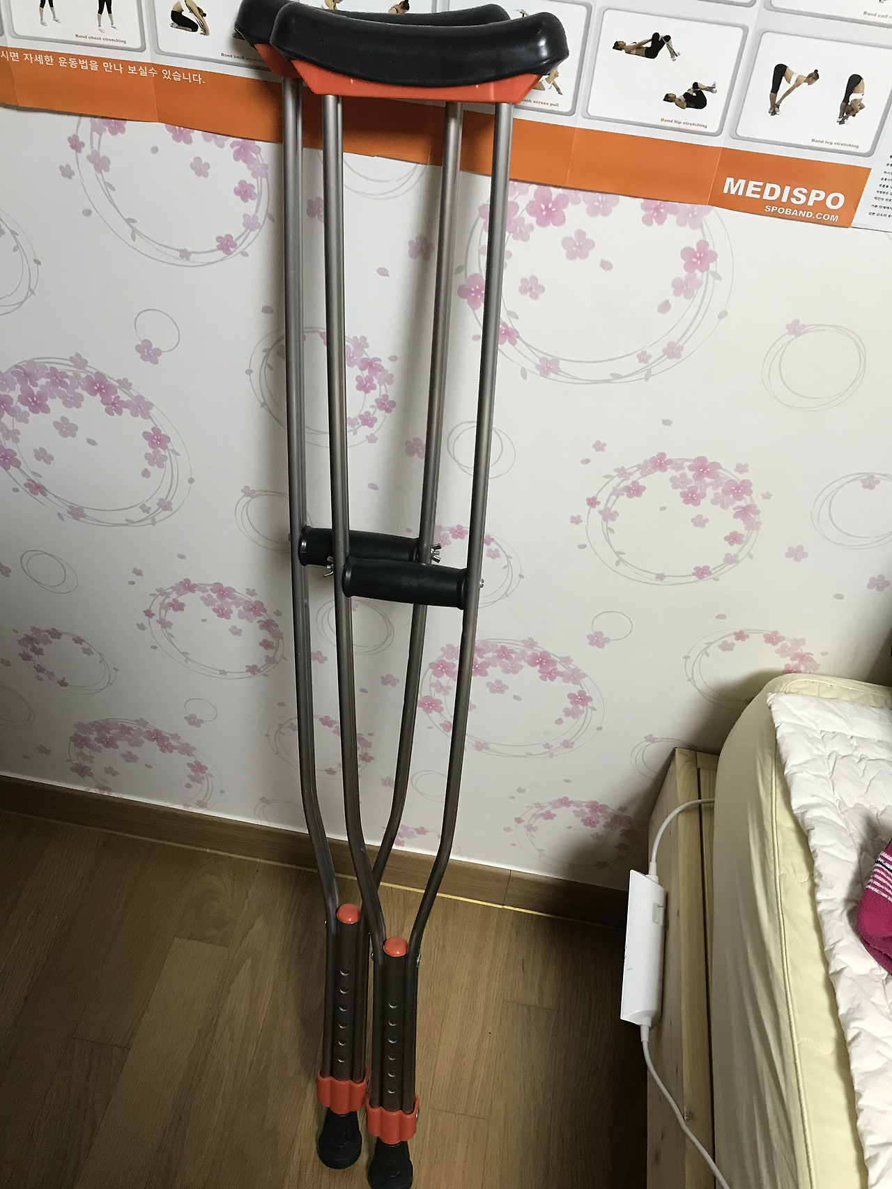 반 깁스를 하고 엉덩이 주사도 맞고 팔에 링거 주사액도 맞았다. 집에 가서 먹으라고 약도 처방해 줬다. 그리고 목발이 필요할 거라 했다. 예전에 식구 중 누군가가 다쳤을 때 사두었던 목발이 있다고 했더니 그걸 쓰란다. 병원에 올 때는 걸어왔는데 집에 갈 때는 남편한테 업히다시피 했다. 갑자기 환자가 되었다.