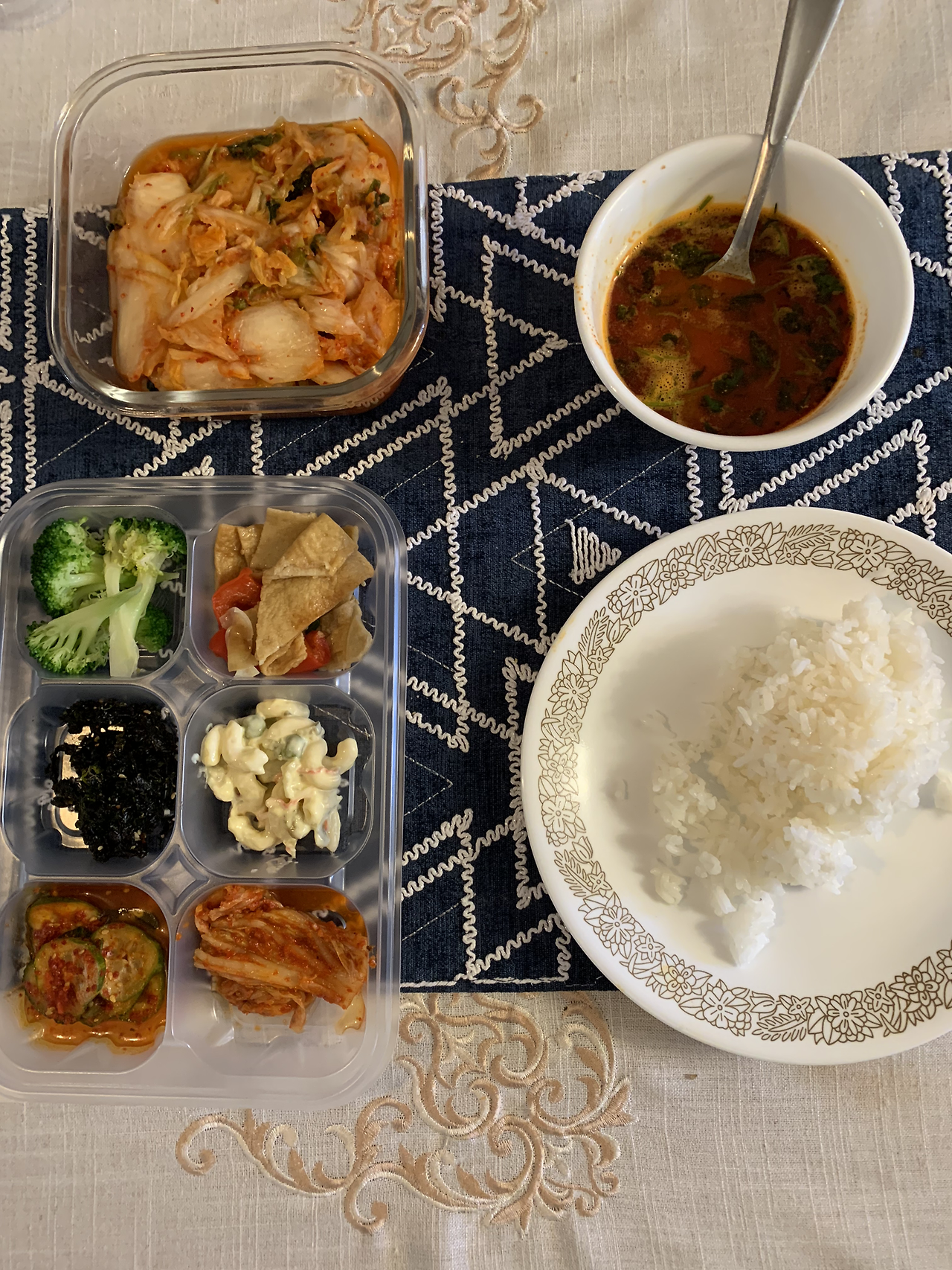 아침으로 빵+잼과 어제 먹고 남은 붕어빵. 그리고 점심으로는 어제 메뉴 그대로 먹었다. 룸메가 여행으로 집을 비워서 김치를 샀다. 평소 김치를 좋아하는 편은 아니지만 거의 일 년 동안 안 먹으면 무슨 메뉴라도 그리워지는 것 같다. 룸메가 돌아오기 전에 후딱 먹어치워야 한다.