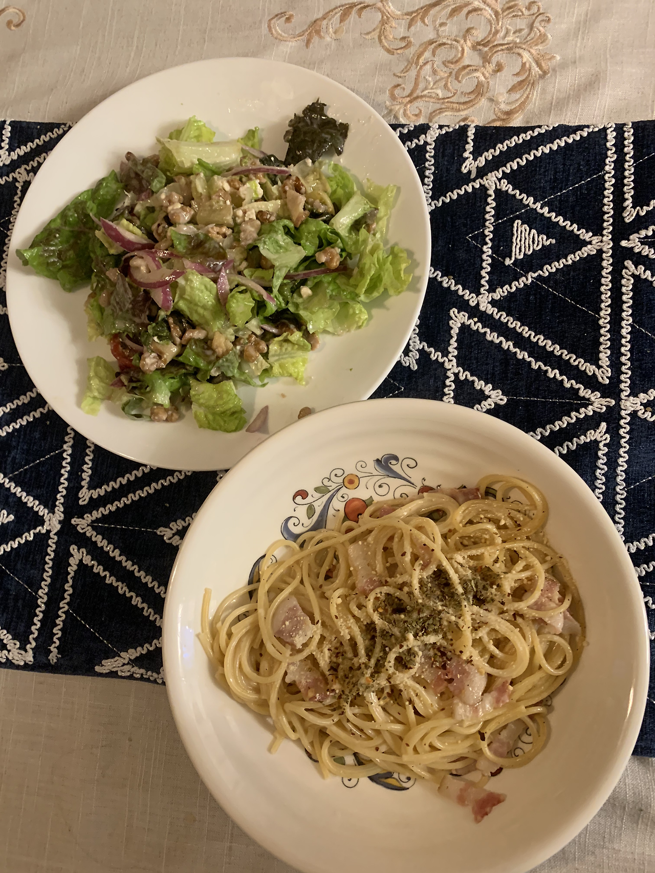 점심으로는 간장계란밥을 했다. 간계밥까지 했다는 것은 냉장고가 비었단 소리다. 저녁은 남은 샐러드에 파스타를 함께 먹었다.