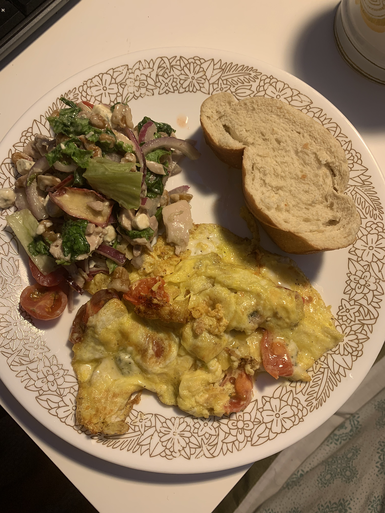아침으로 오믈렛과 어제 남은 샐러드 조금 그리고 빵을 먹었다. 오늘은 월요일이지만 공휴일이라 아침도 여유롭고 너무 좋다.
