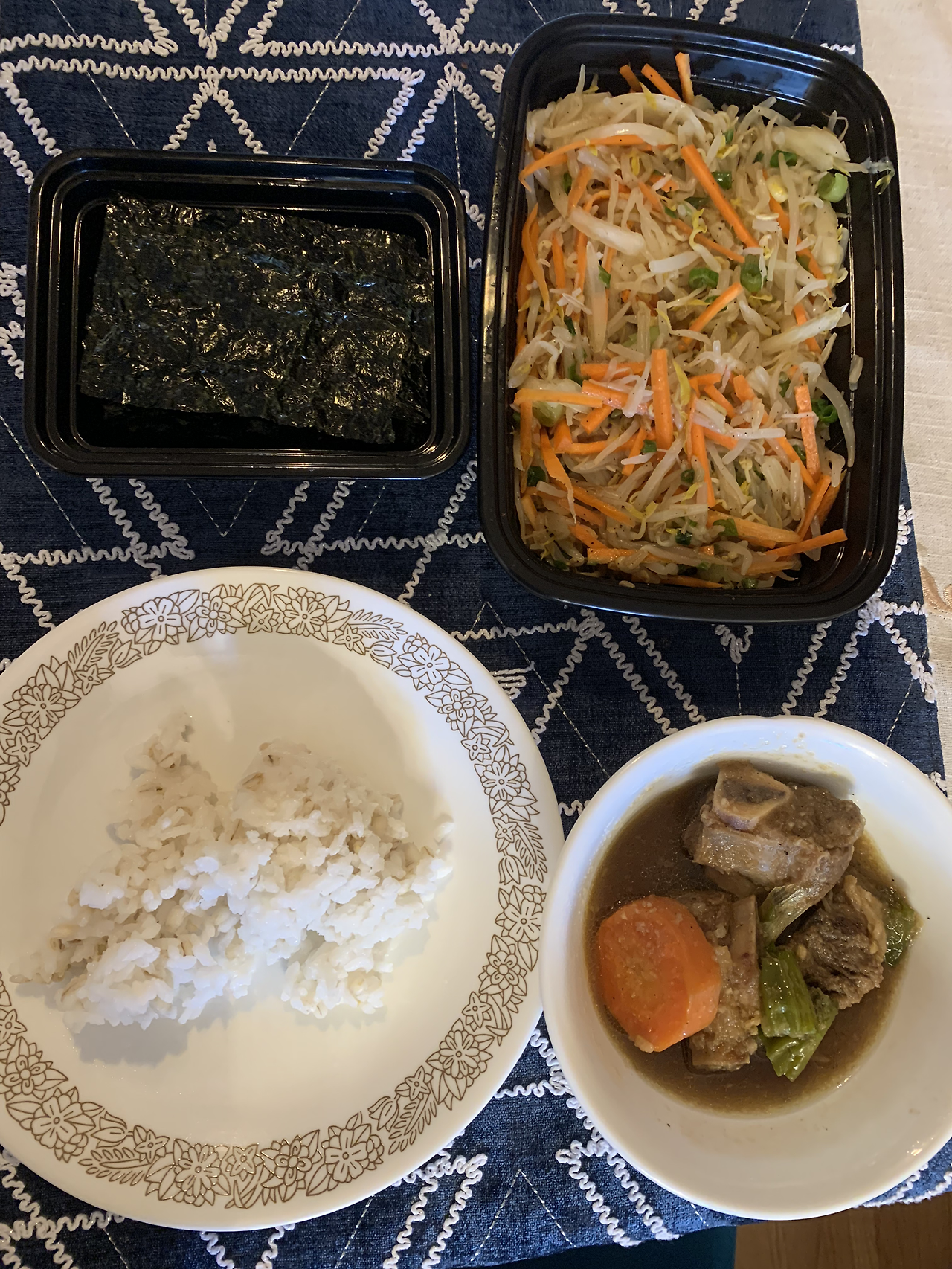 점심으로는 갈비찜을 했다. 엄마가 한국에 가 계신데 한국은 설날이라고 한다. 그래서 갑자기 바람이 들었는지 갈비찜을 만들었다ㅋㅋㅋㅋ. 빠진 재료도 많고 계량을 할 수가 없어서 대충 맛봐 가면서 간했는데 맛있다 완전 성공적! 갈비찜은 소스빨이고 소스는 간장 설탕 라면스프만 있으면 오케이다. 배랑 사과랑 양파도 갈아넣긴 했지만 저 세 개만 있어도 그럭저럭 맛이 날 것 같다. 뿌듯하고 맛있었다.
