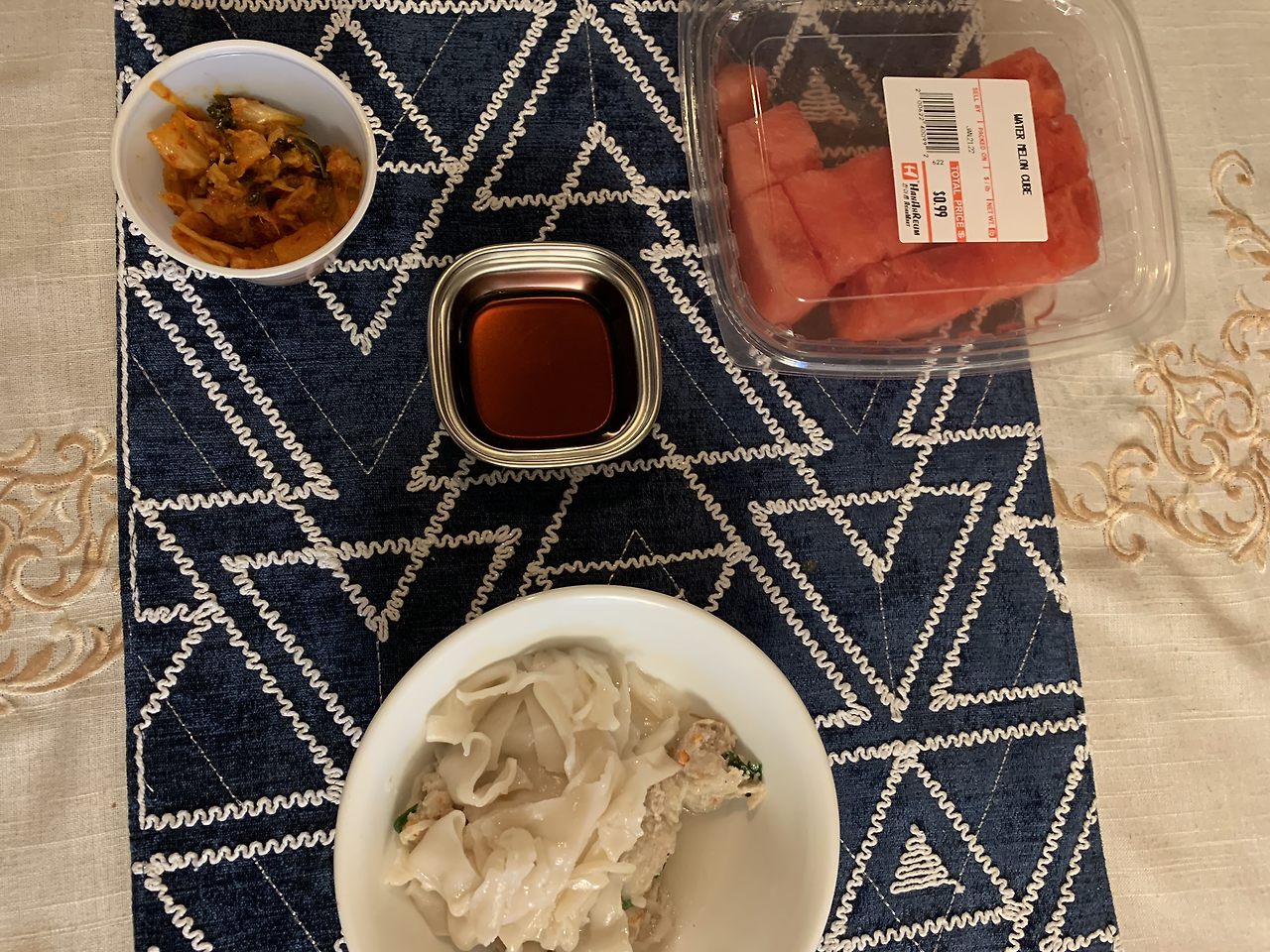 저녁은 만두를 삶고 김치볶음밥 먹고 남은 김치로 만든 볶음김치를 반찬 삼아 먹었다. 디저트로는 수박.