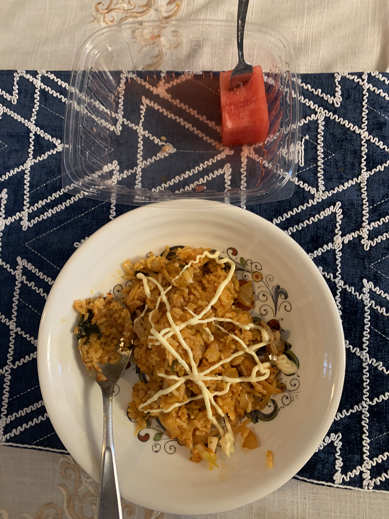 저녁으로는 김치볶음밥을 했다. 룸메가 있을 때에는 김치를 먹지 못하니가 김볶밥도 오랜만인데 그래서 그런가 너무 맛있게 먹었다ㅠㅠㅠ 김볶밥에 마요 추가는 필수다.