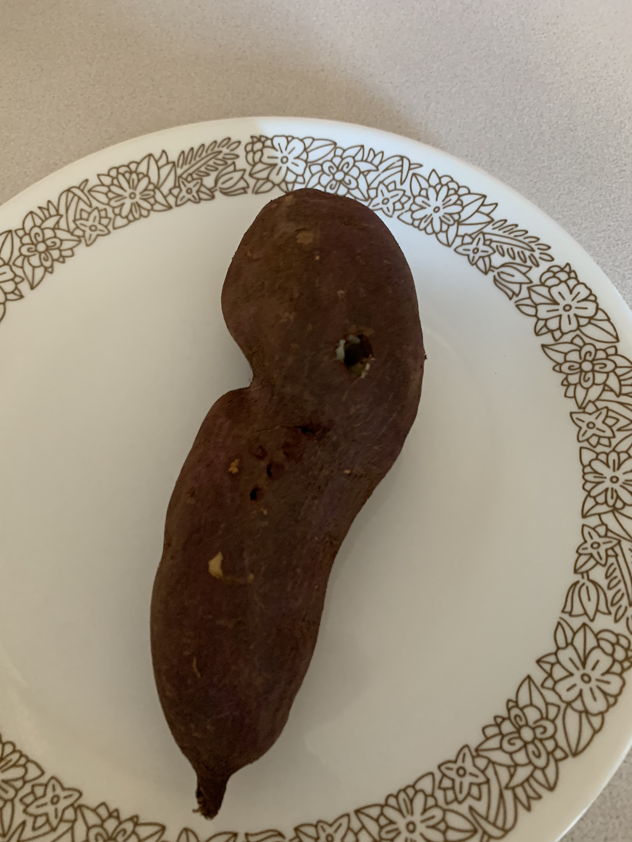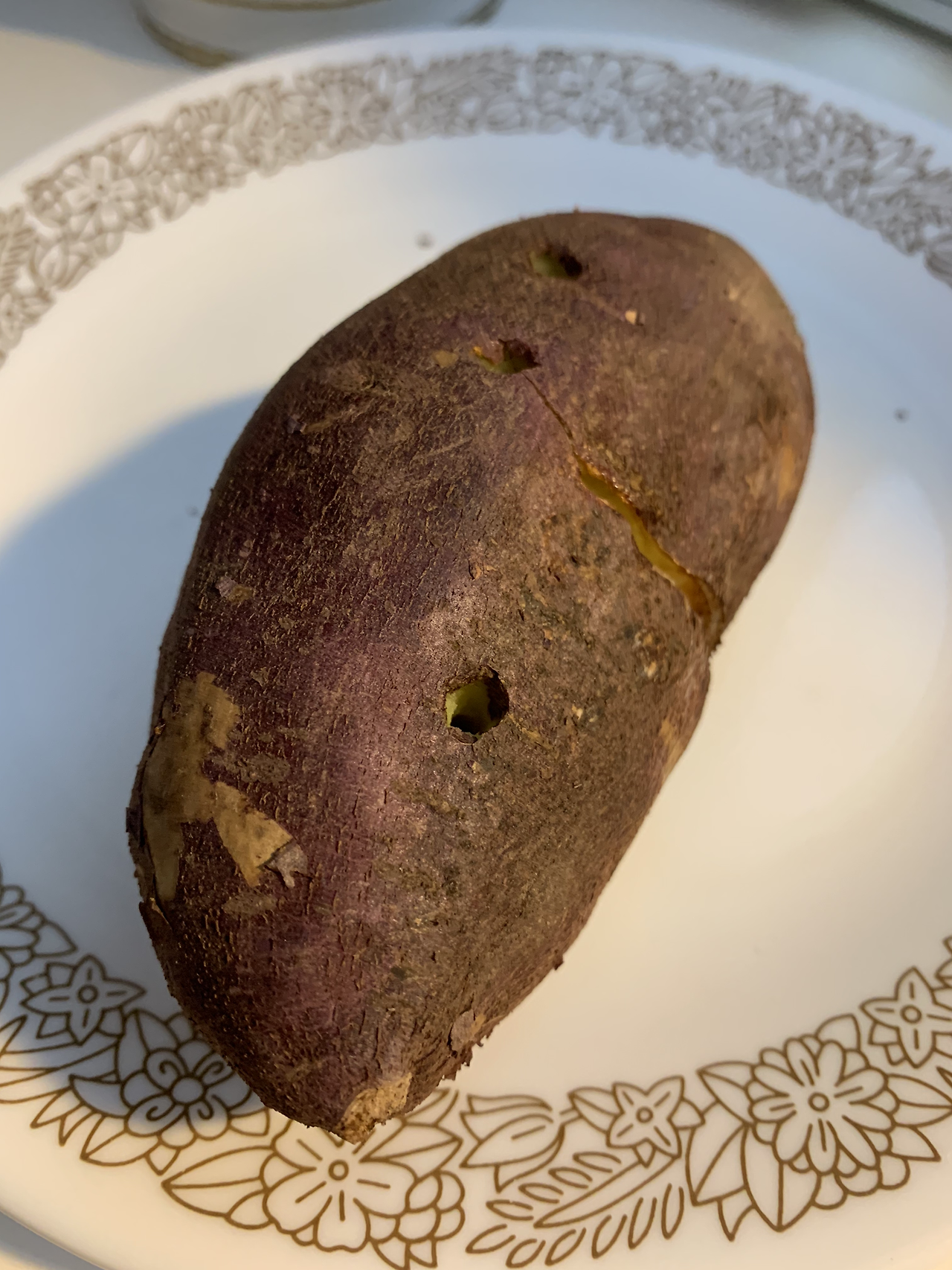 액티비아가 아닌 요거트로 아침! 그리고 간식으로 군고구마! 모양과 색이 멀리서 보면 똥 같다는 걸 사진 찍고 알았다. 맛은 좋다. 자르는 것보다 통으로 굽는 게 훨씬 오랜 시간이 걸렸다.