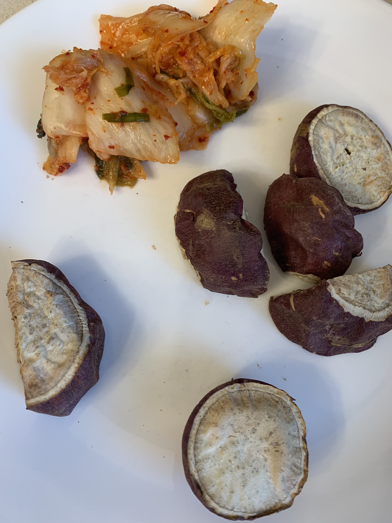 액티비아로 아침. 오늘로 액티비아가 끝났다. 내일부터는 다른 요거트를 먹을 예정. 간식으로는 군고구마와 김치를 먹었다. 오늘 저녁에 룸메가 돌아와서 그전에 김치를 다 먹는 게 목표다.