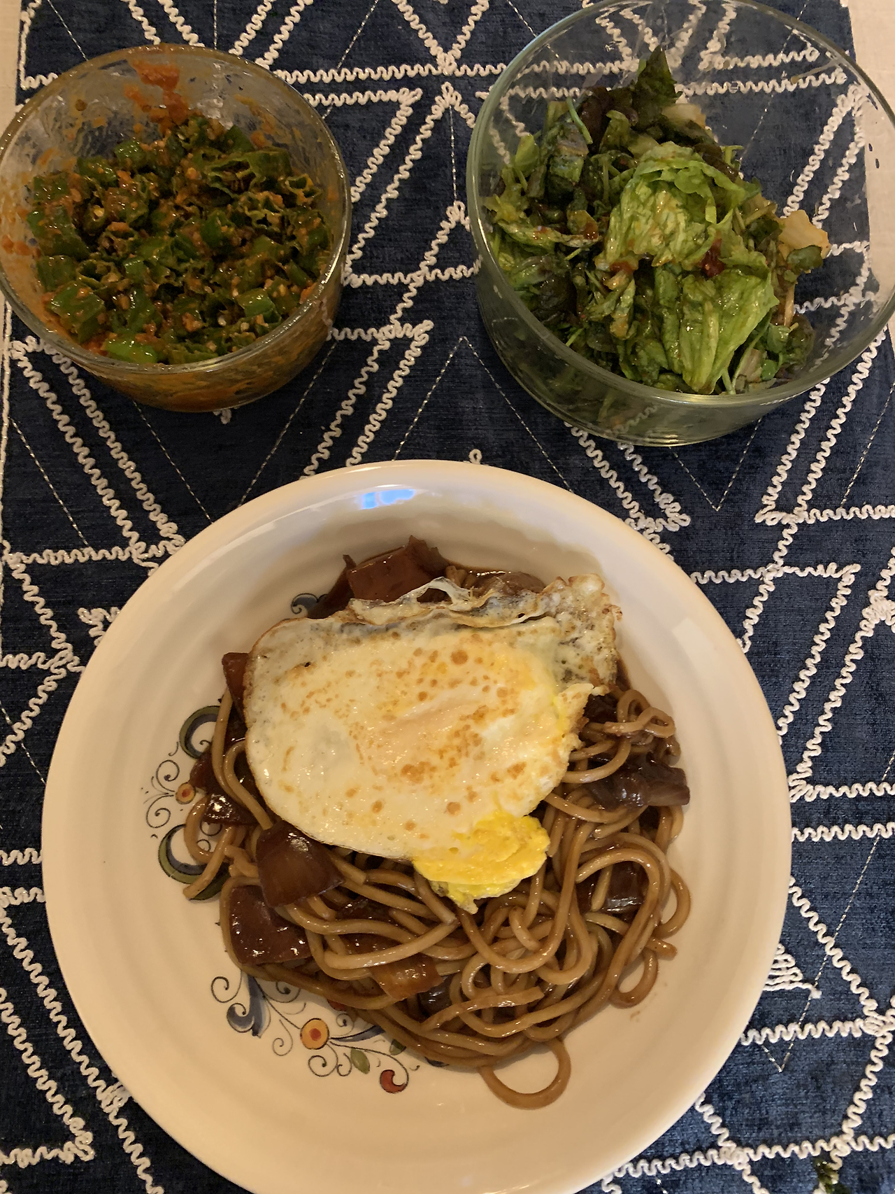 저녁은 자장면에 계란 프라이 꽈리고추무침 그리고 상추겉절이를 먹었다. 저녁에도 계란 프라이 먹으려고 점심에 하나만 먹었다. 상추 겉절이는 맛있었지만 상추를 대충 닦아서 흙이 계속 씹혔다. 꼼꼼하게 살자 좀,,
