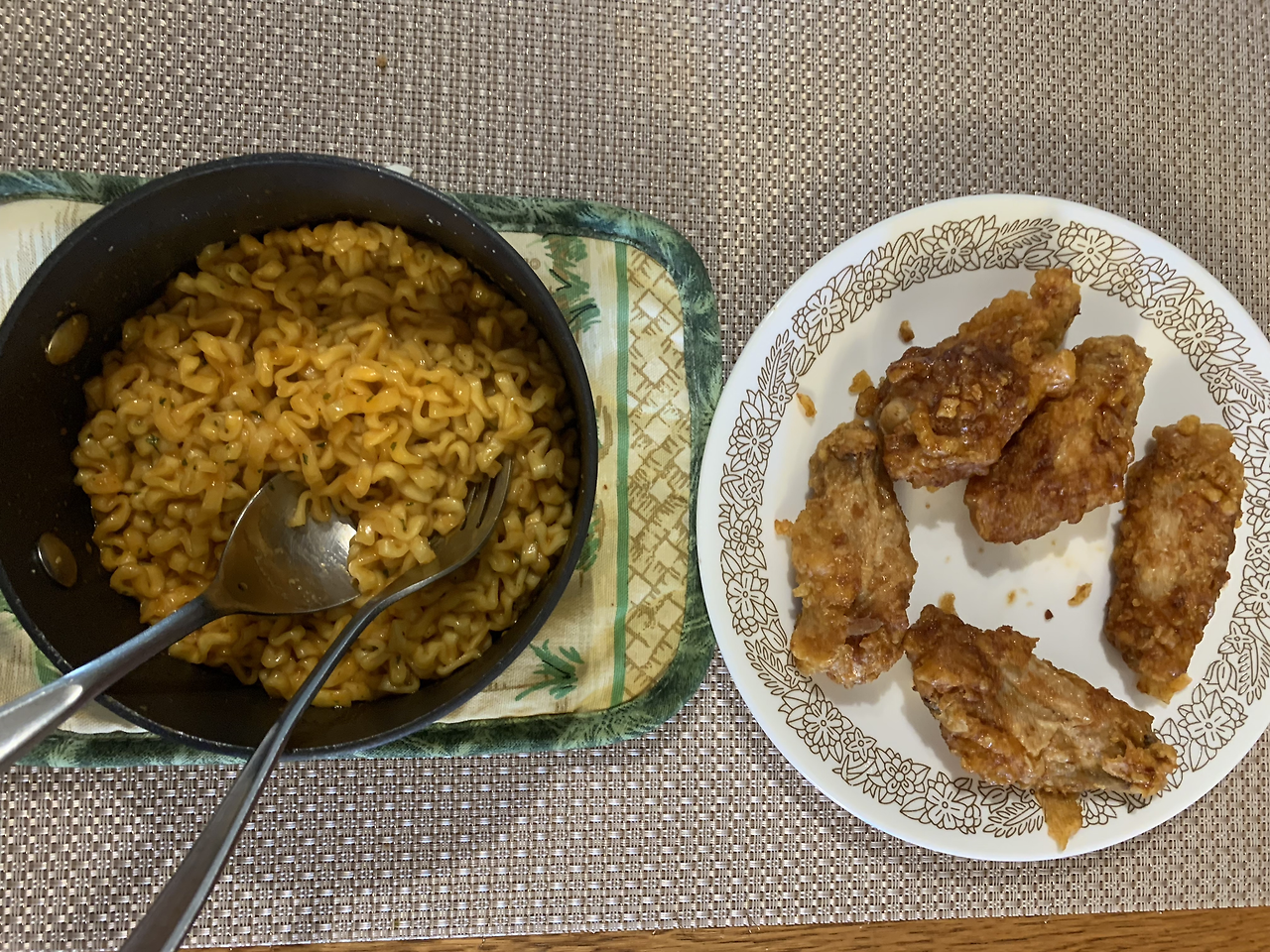 점심은 치킨 남은 거에 까르보 불닭. 본가 다녀온 후로 먹는 양이 훅 늘었다.