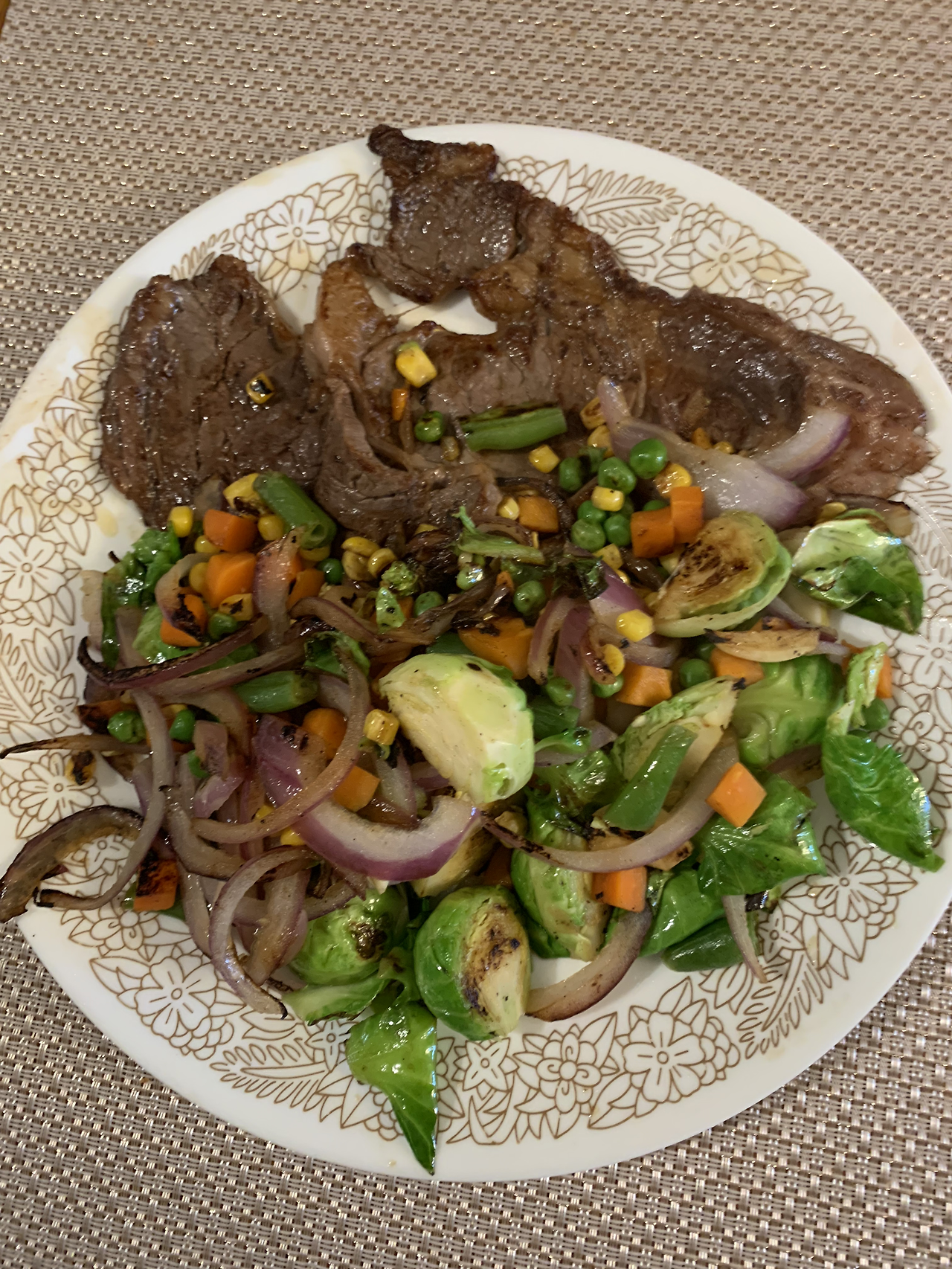 점심은 립아이와 야채구이. 일부로 얇은 고기로 샀다. 두꺼운 고기는 너무 굽기 어려워ㅠ. 야채를 저렇게 많이 먹을 생각은 없었는데 이것저것 넣다 보니까 양이 늘어났다. 구운 야채는 맛있어서 좋아한다. 하지만 뭔가 생 야채가 아니면 건강해지는 느낌이 들지 않는다.