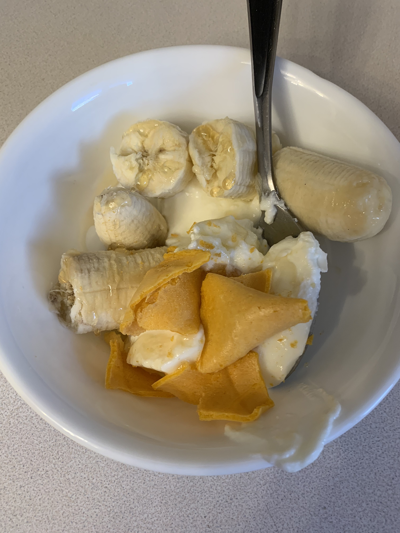 요거트와 바나나와 포츈 쿠키. 옛~날에 중국음식 시키고 받은 건데 영 안 먹어서 그냥 넣었다. 간식으로는 쿠키와 당근 아주 조금 남은 것.